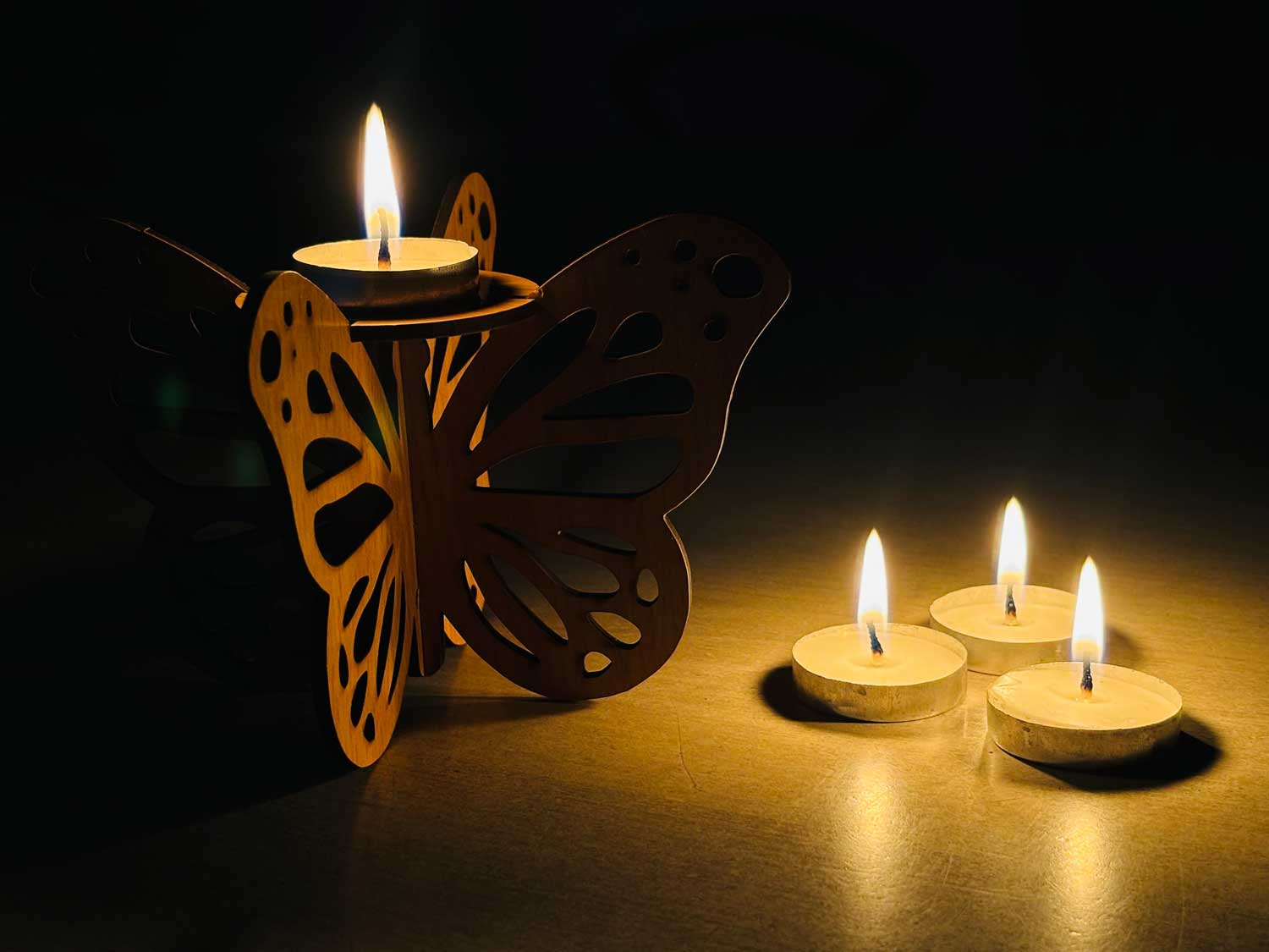 Butterfly Wooden Diya Stand For Diwali With Tealight Candles