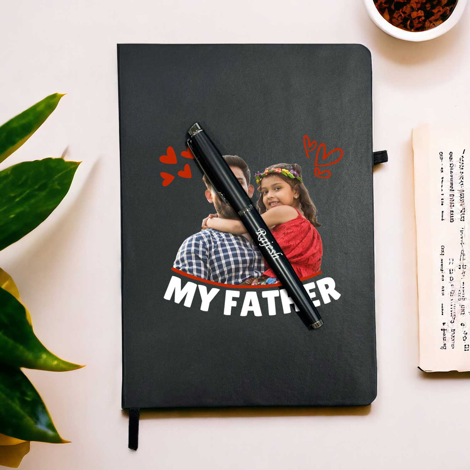 This custom diary is not just a writing tool but a personalized journal that reflects your father’s personality and style. The option to include a matching pen enhances its appeal, making it a complete gift set. In addition to its beautiful design, this customized diary with photo is printed in vibrant colors that bring your chosen images to life. It’s more than just a personalized diary and pen; it’s a piece of art that tells a story. Our diary for dad is versatile, suitable for various uses such as a planner, journal, or notebook. For those who appreciate thoughtful and personalized gifts, this diary is an excellent choice.
