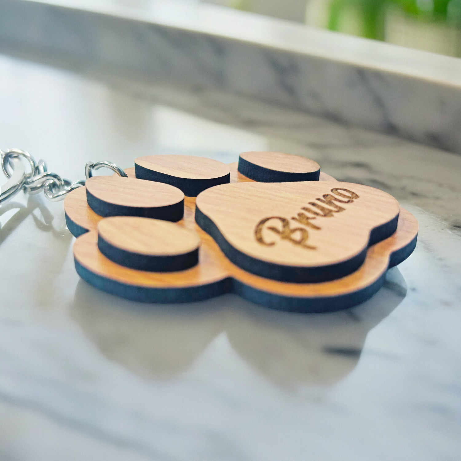 Our custom wooden paw keychain with name is the perfect personalized gift for pet lovers. Beautifully crafted for pet owners who cherish their furry friends.