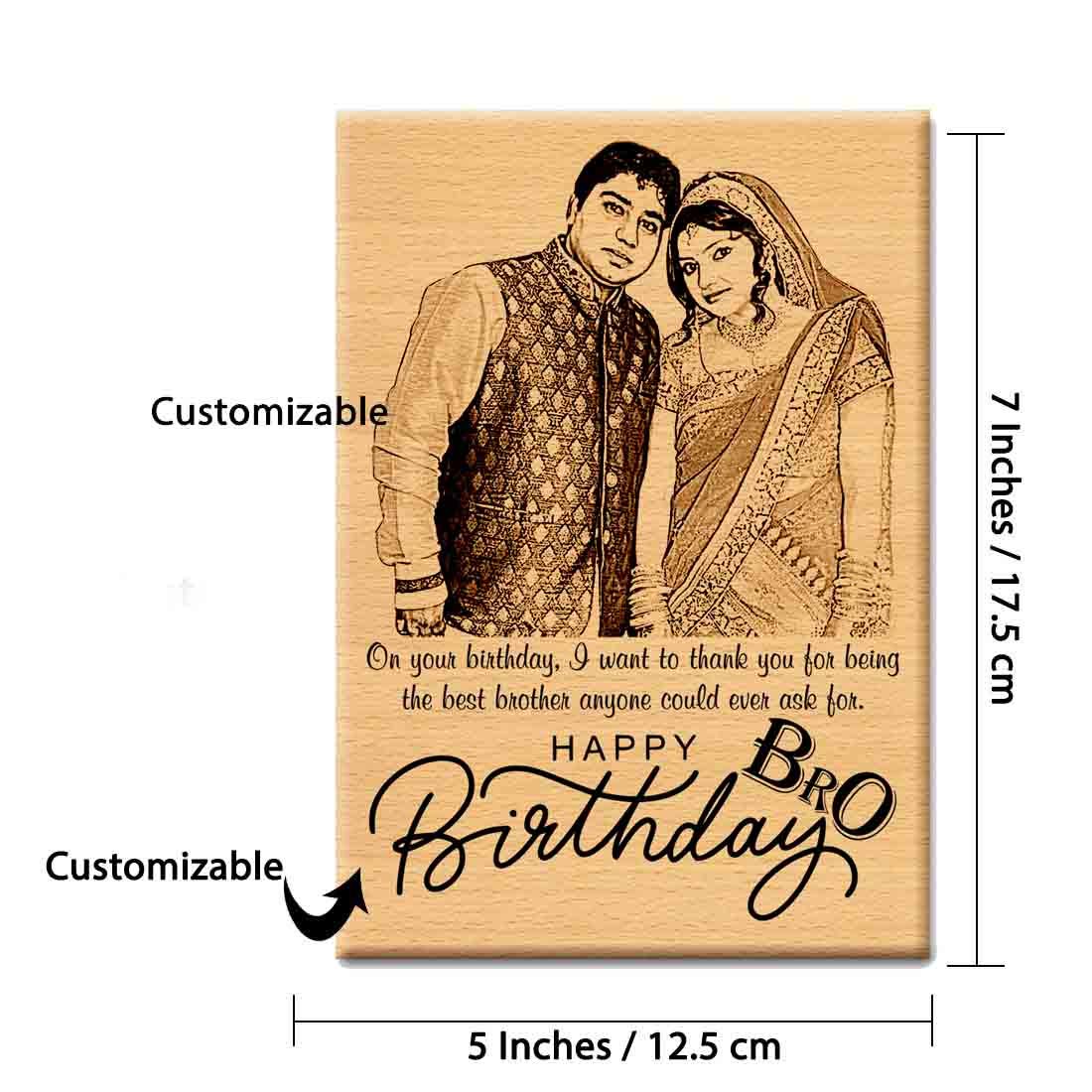 Customized Engraved Wooden Frame with Photo and Carved Message Happy Birthday Bro
