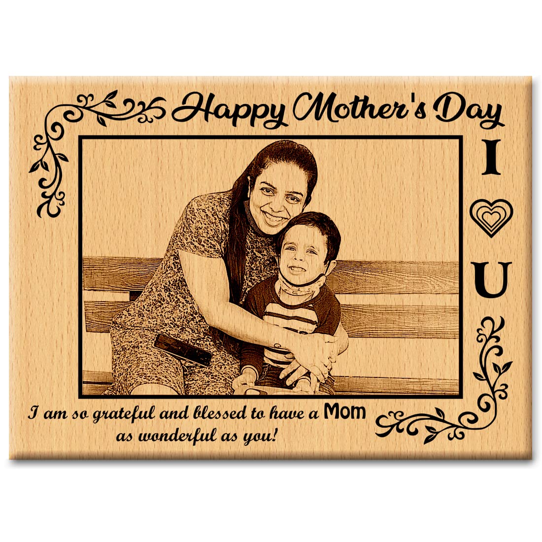 What sets this photo frame apart is its customizable feature, allowing you to personalize it with your favorite photo and a heartfelt message. Whether you choose to engrave a meaningful quote, a memorable date, or a touching message, each detail is meticulously etched onto the wood, creating a lasting keepsake that your mother will treasure for years to come.