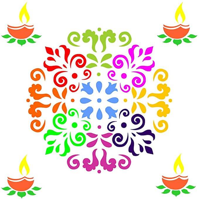 It is a best product for diwali and other festival. Available in different designs and sizes. It contains free colors, free diya to help you make rangoli. Also, it is best for outdoor and indoor. Rangoli stencils are best product for diwali and other festival.