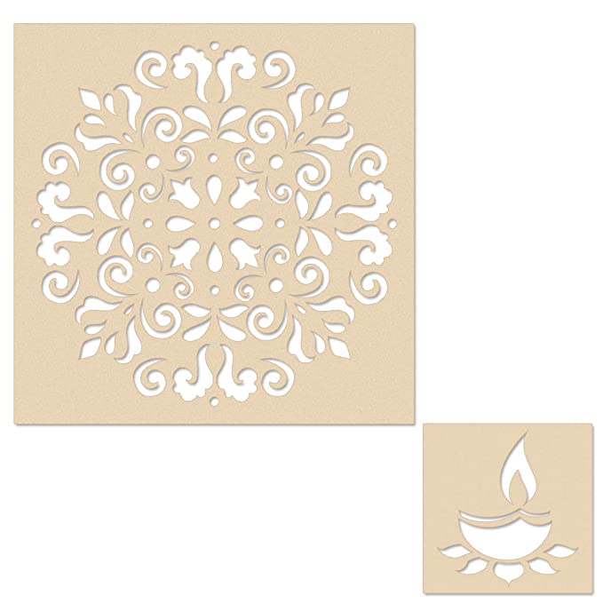 This Rangoli Stencils is made from MDF board and laser cut with high precision. The valuable craftsmanship and beautiful patterns are hand painted using acrylics. The product is best for decoraci?n purposes like Diwali, Holi festival and other occasions like wedding, house warming, party etc. Available in various designs and specifications, these Rangoli patterns are best for indoor and outdoor decoration and are available in free diya,