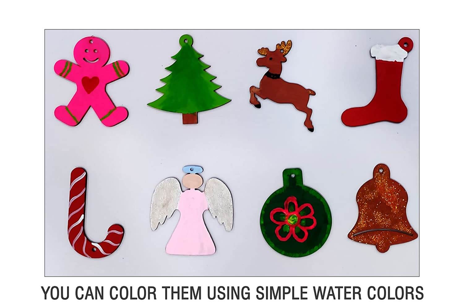 - Set of 8 Ornaments – The Christmas Wooden ornament includes Reindeer, Xmas Tree, gingerbread men, Candy cane, Bell, Angel, Sock and a ball