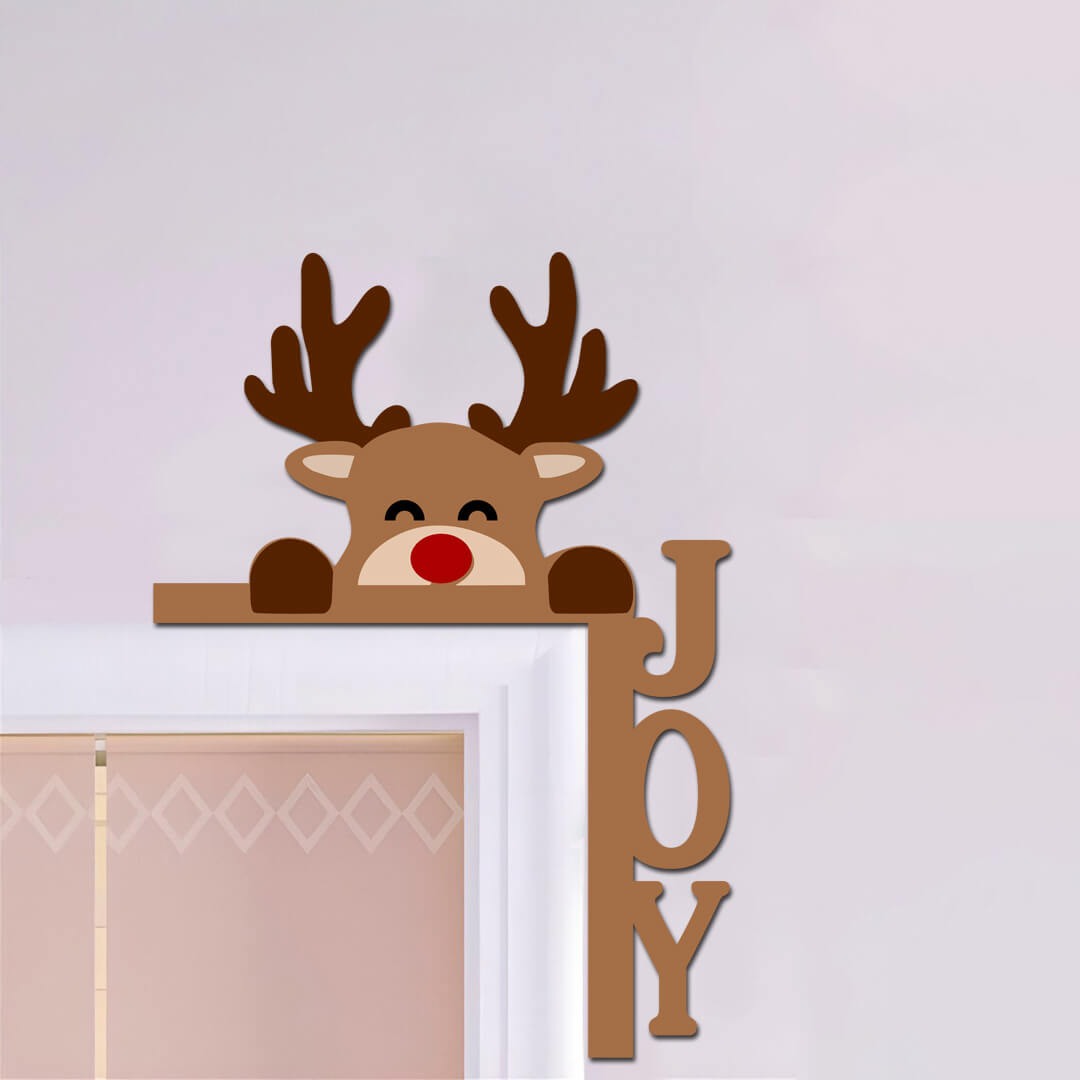 Premium Wooden Reindeer Door Corner Emblem Set of 2