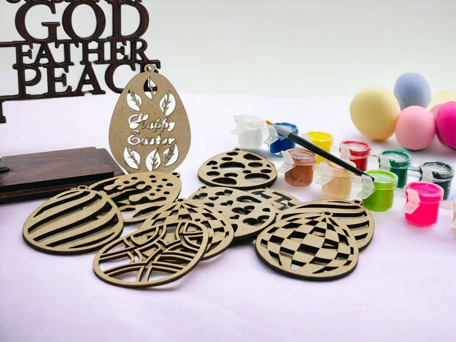 Our Easter Wooden Egg Ornaments Set of 15 is a versatile and fun addition to your Easter decorations. They are perfect for easter eggs decoration, easter painting ideas, and easter arts and crafts. They also make great easter gifts for kids, and will add a touch of Easter charm to your home decor. The size of each wooden egg ornament is 3×2 Inches.