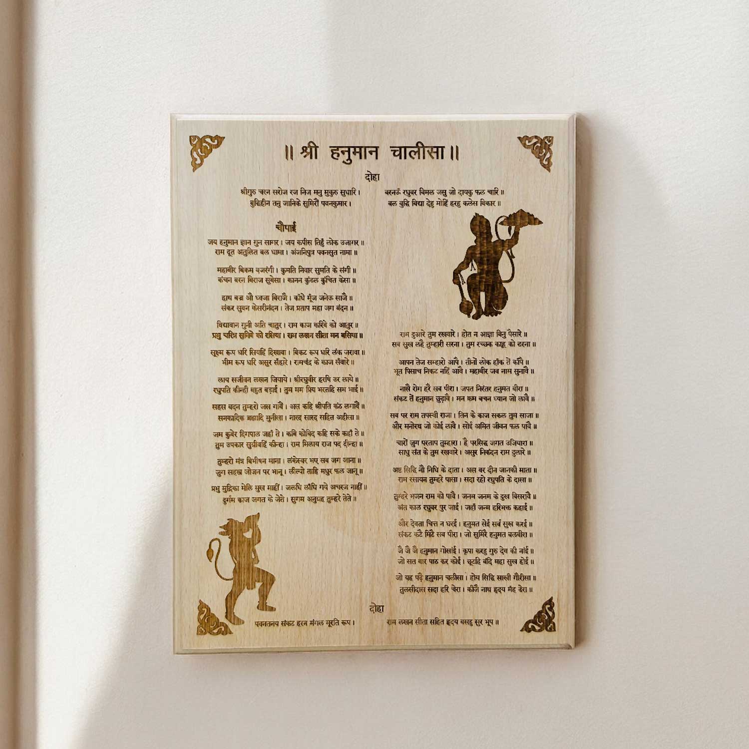 Introducing the Elegant Hanuman Chalisa Frame, a beautifully crafted piece that seamlessly blends spirituality with art. This stunning frame is made from premium-quality beech wood, ensuring durability and a timeless aesthetic. The Hanuman Chalisa is an important prayer in Hinduism, dedicated to Lord Hanuman, the epitome of devotion, strength, and protection. This Hanuman Chalisa frame not only serves as a decorative piece but also as a daily reminder of faith and devotion.