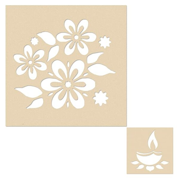 Rangoli stencils are made from MDF, laser cut and best for diwali and other festival. Available in different designs. Free colors, Free diya. Best for outdoor and indoor.
