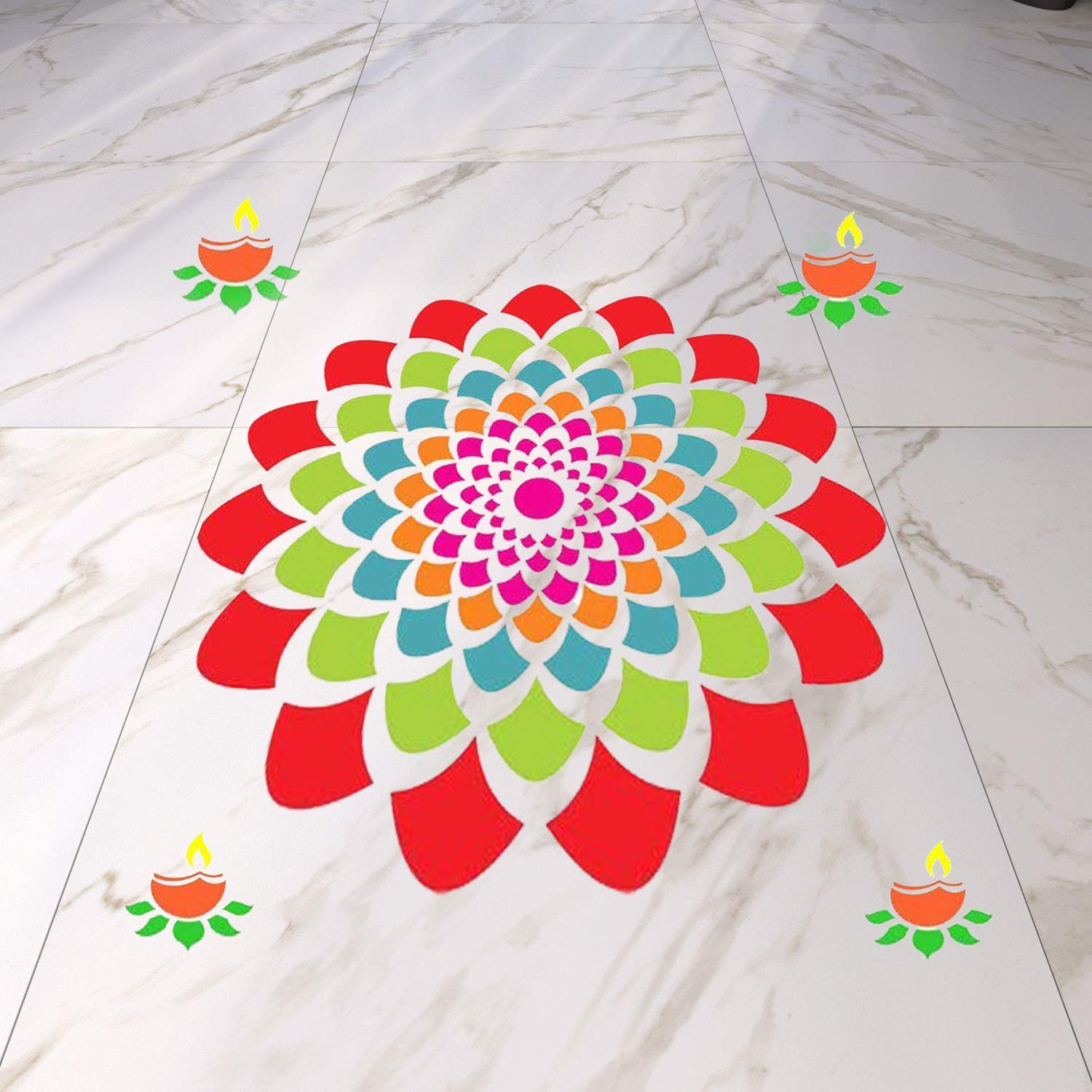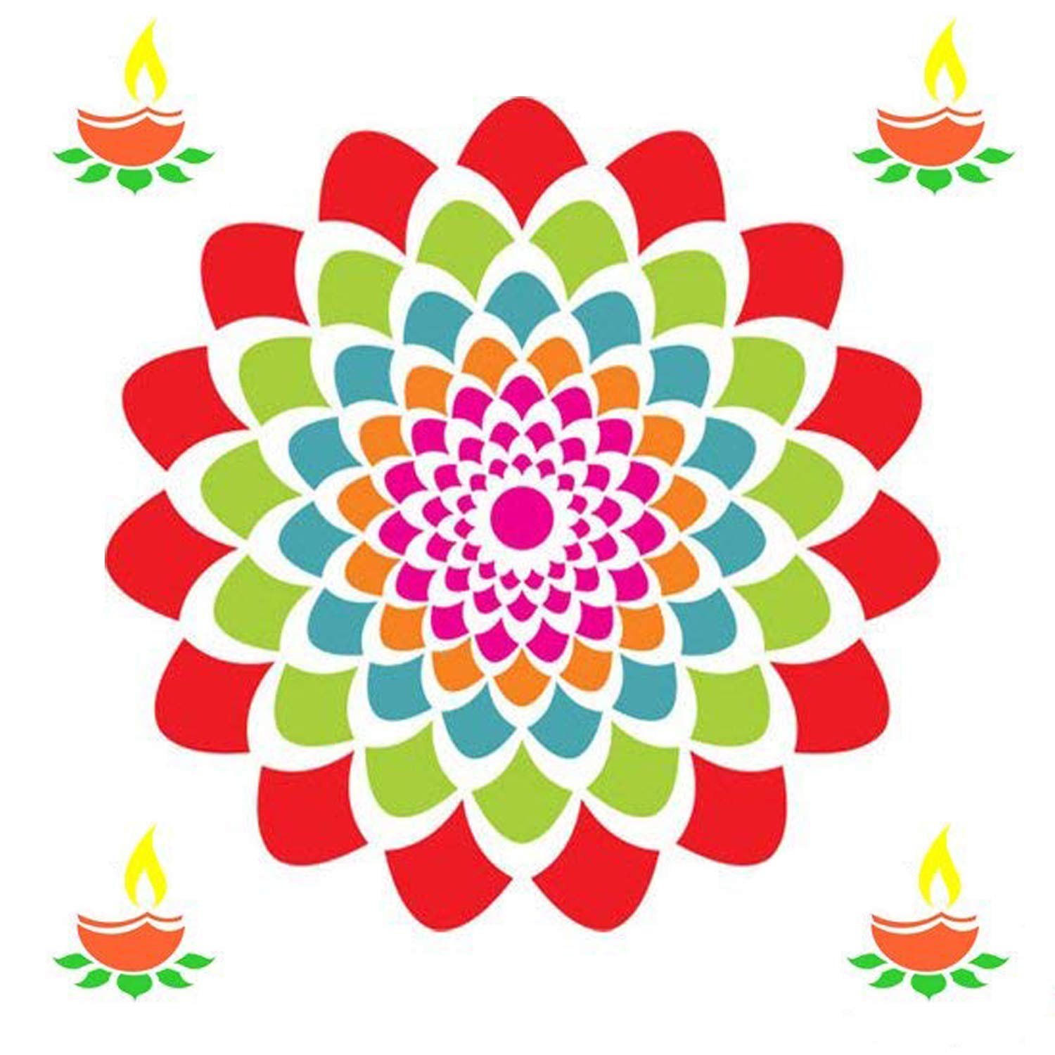 Floral Diya Rangoli Stencils for Diwali Decorations (Set of 2 Stencil, 6 Colors Bottles, 1 Nozzle)