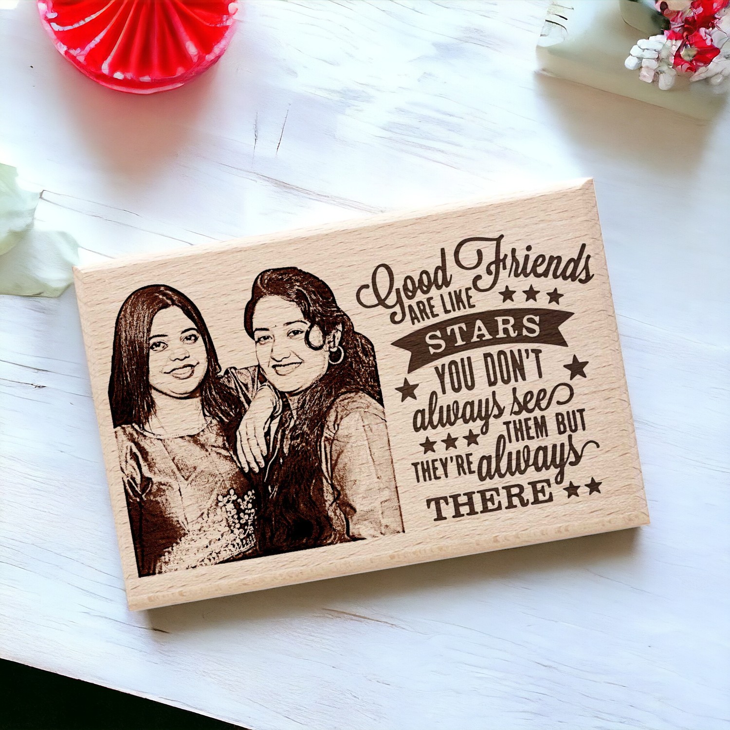 Celebrate the timeless bond of friendship with our Personalized Photo Plaque Friendship Gift for Best Friend, a gift for your best friend that he or she’ll cherish for lifetime. This 6×4 inches photo frame is fashioned from beech wood, ensuring durability and elegance in every detail. Crafted with care, this Friendship Gift is more than just a photo frame; it’s a testament to the cherished moments shared with your best friend. Whether it’s for a photo frame for birthday gift for best friend or friendship day gift for best friend, this thoughtful gesture embodies the essence of true friendship.