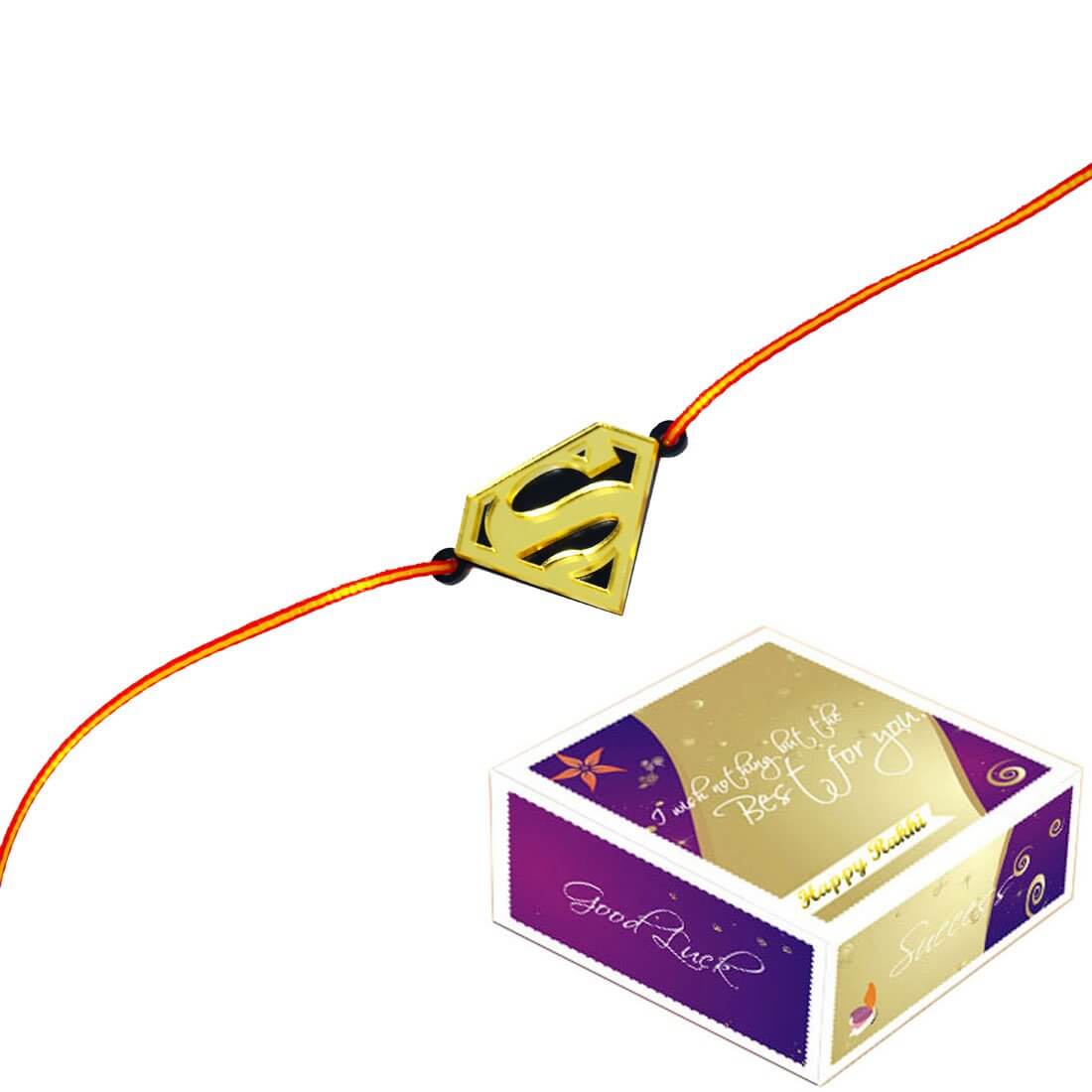 - Package Contents: Super Man rakhi with thread