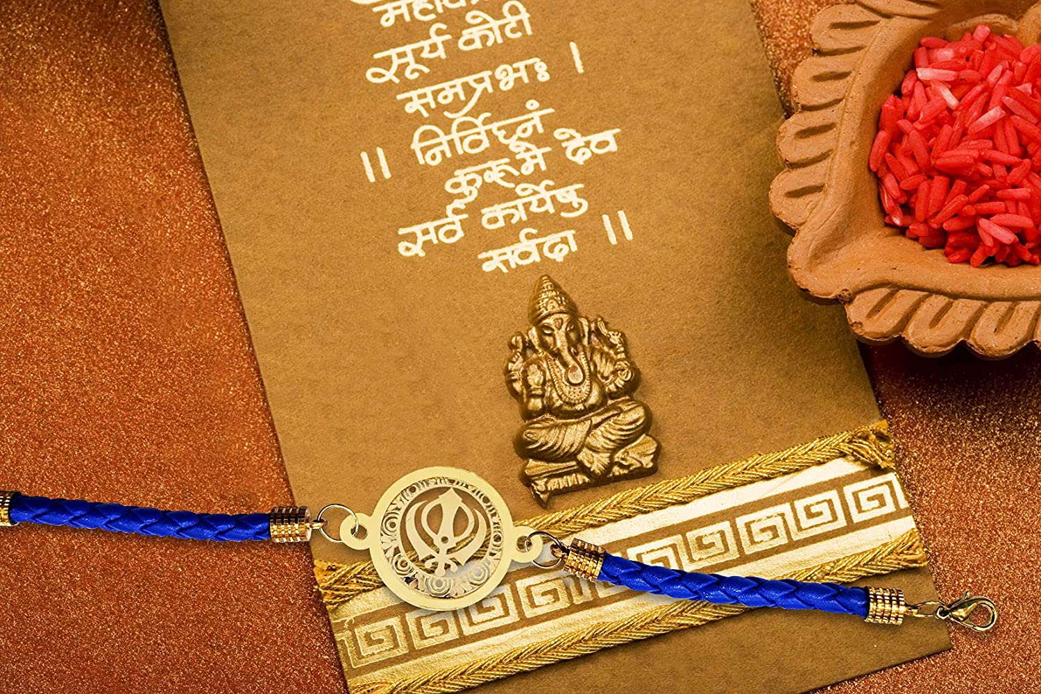 Gold Plated Punjabi Khanda Bracelet Incredible Rakhi for Best Bhai