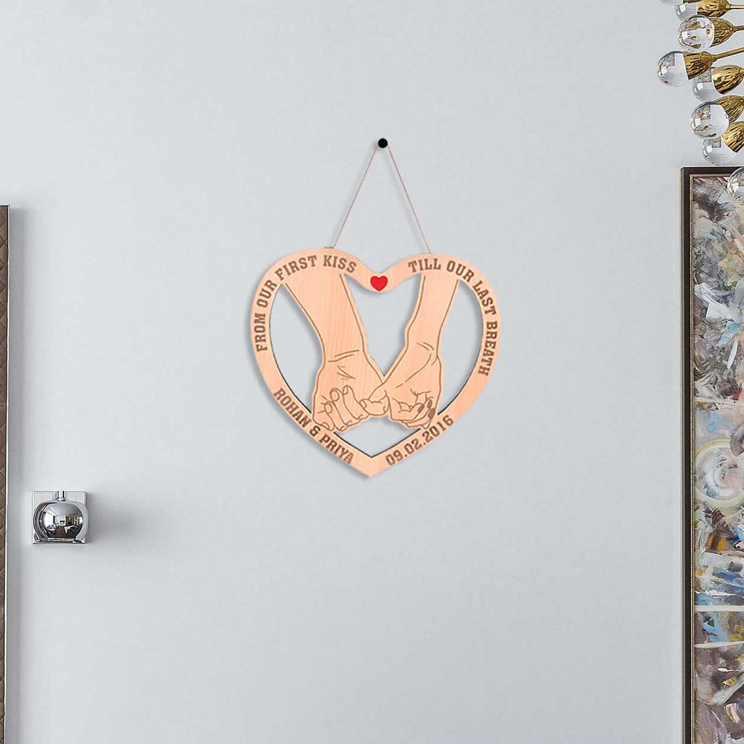 This personalized wooden board Heart Shape Sign with attractive design is a perfect Valentine’s Day gift idea for your loved one. It is a very thoughtful gift option to convey your greetings and warm wishes to your loved ones on this Valentine’s Day. Personalized Engraved Heart Shape Wooden Board Sign: Made of MDF Wood and Sturdy Rounded Edges, these beautiful personalized engraved boards are a perfect wedding anniversary gift, best gift for a wedding couple or valentine’s day gift, or a sign of love for a fianc? to display at home. Personalize with names, dates. These sign boards are made in India, eco friendly. This wooden board can be hanged on wall.