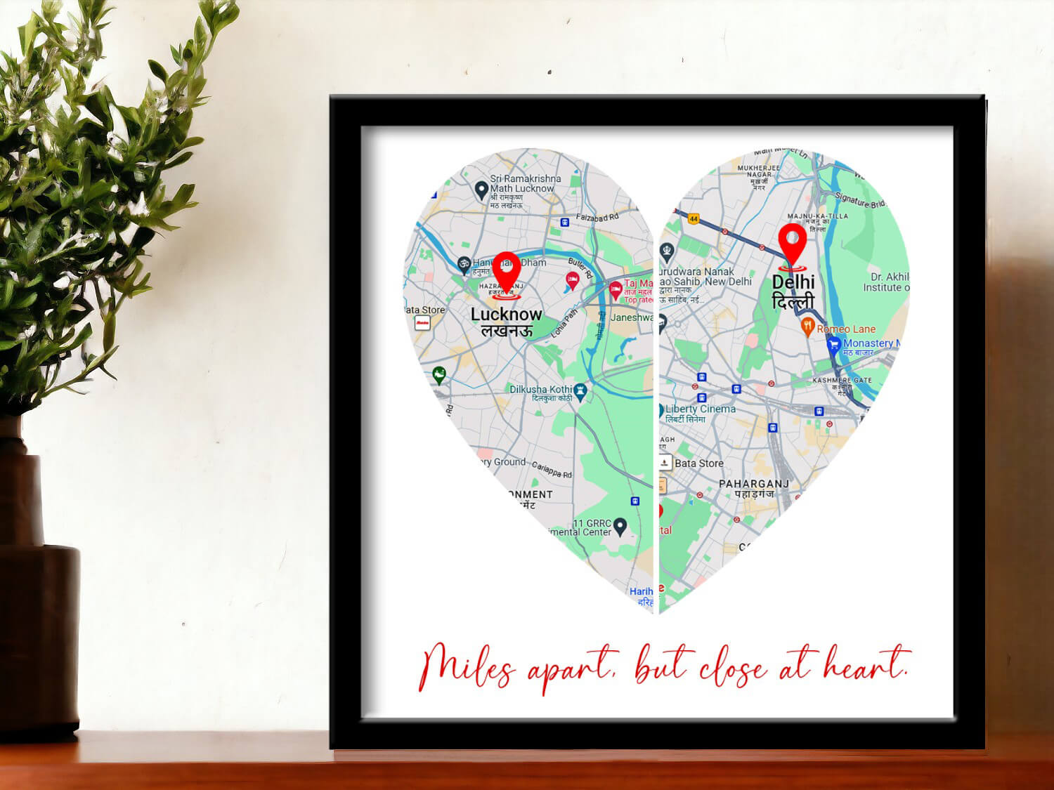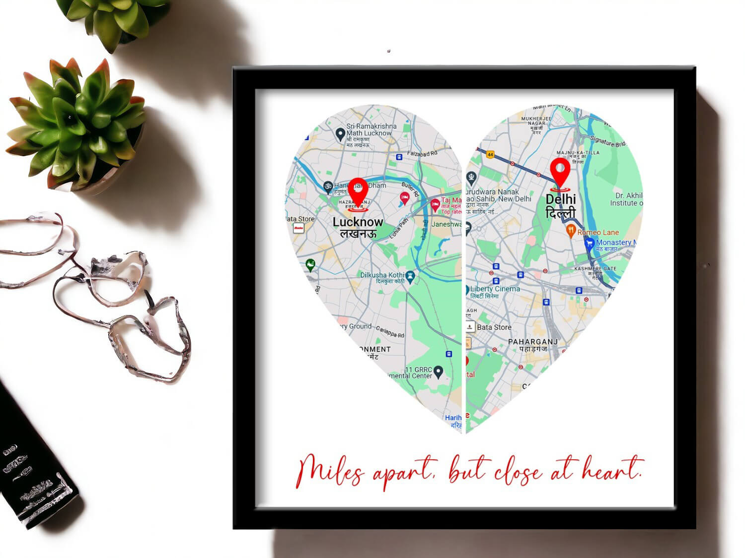 Crafted with care, our map frame is made from superfine-quality materials to ensure durability and longevity. It comes with a love quote and your chosen locations on the map, adding a personal touch to this thoughtful gift. The elegant design fits seamlessly into any decor, making it a cherished addition to your home. Ideal for birthdays, anniversaries, Valentine’s Day, or any day you want to make special, our Long Distance Couple Map Frame is a symbol of love and connection. Surprise your partner with this meaningful gift and let them know that distance can never diminish the bond you share.