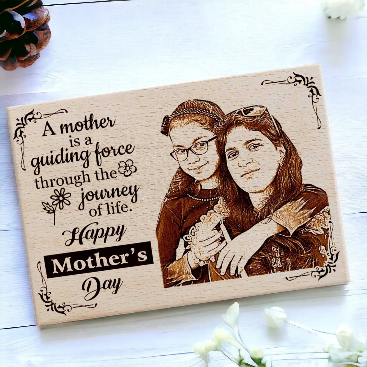 Mother’s Day Personalized Gift Engraved Photo Plaque Wood Gift for Mom (8×6 inches)
