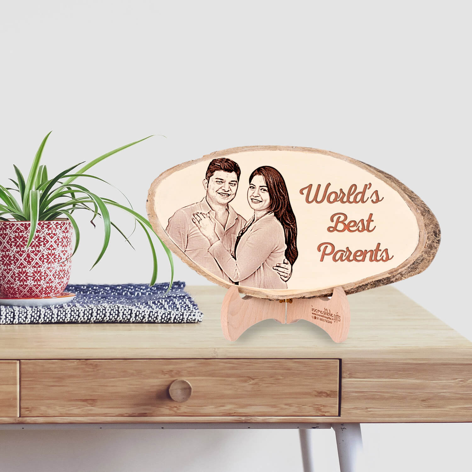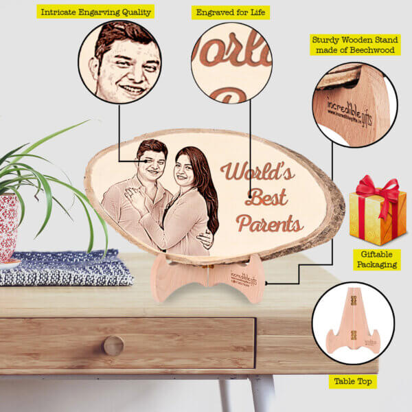 Our personalized natural frame is exquisitely designed to showcase a cherished photograph of your parents. Crafted with care, it features a perfect detailing, symbolizing the love and bond between parents and children. The gift for mom and dad which include frame is made from high-quality materials, ensuring its durability and longevity.