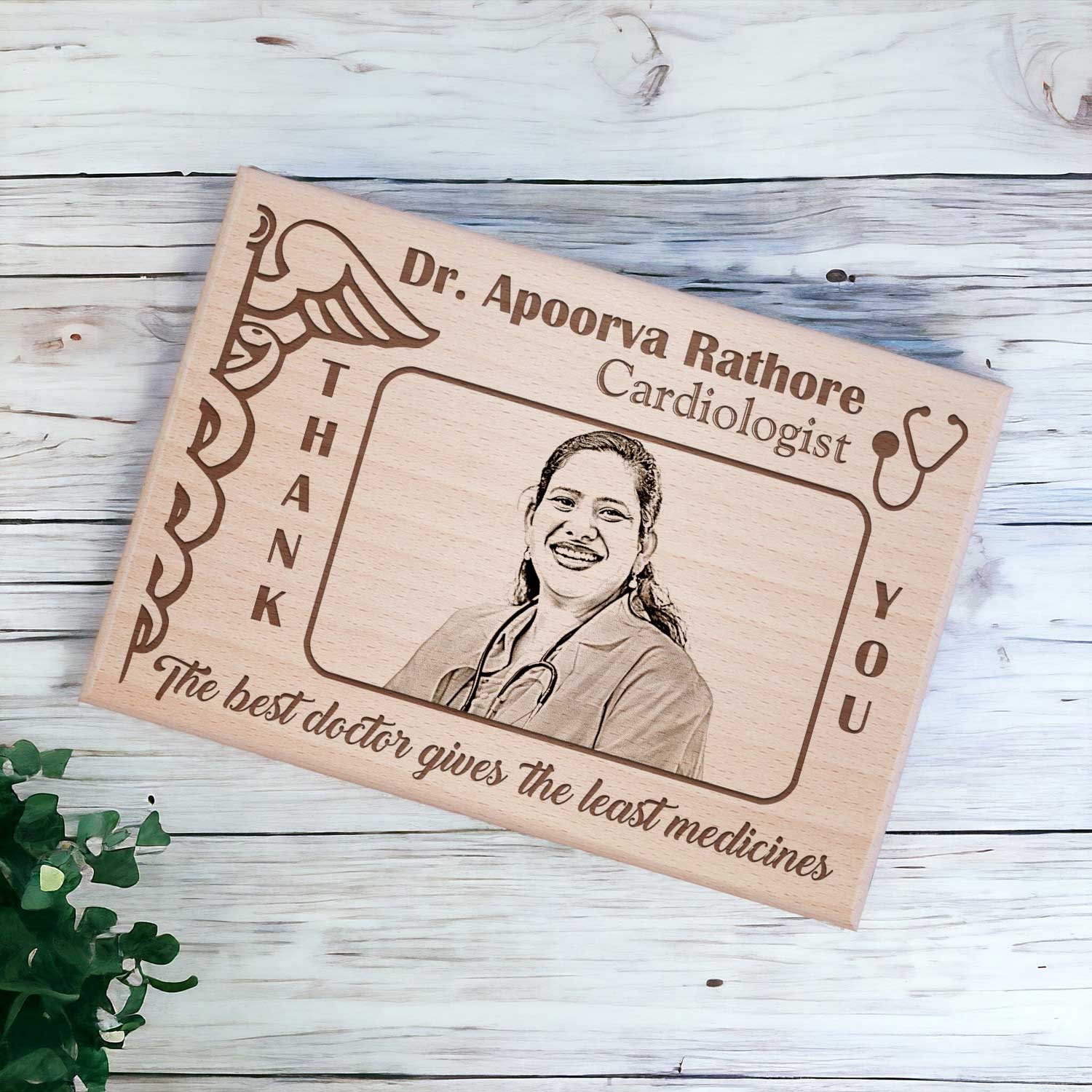 Our Wooden Customized Photo Best Gift for a Doctor, sized 7×4 Inches and made from premium beech wood, is the perfect personalized gift to show appreciation.