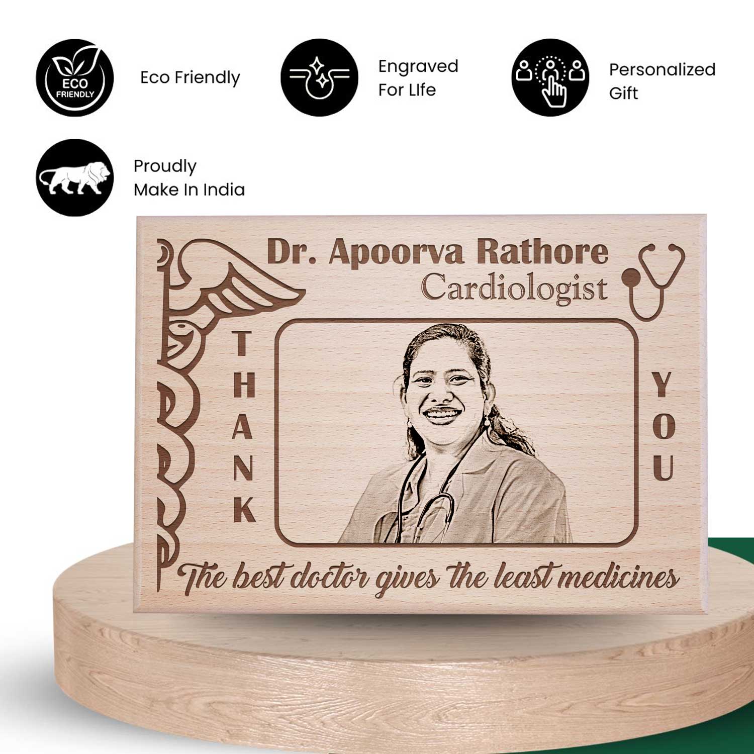 It can be displayed on a desk, shelf, or wall, making it a flexible decor piece that can fit seamlessly into any space. Whether it’s for birthday, retirement or any other milestone in their life, this plaque serves the best gift for a doctor. Choosing the best gift for a doctor can be challenging, but our Wooden Customized Photo Plaque makes the decision easier. It’s a thoughtful present for doctor that conveys gratitude and recognition. Customized wooden gifts like this plaque reflect our dedication to providing exceptional products that our customers can be proud to give. Personalized doctor gifts make a lasting impact, and our Wooden Customized Photo Plaque is no exception.