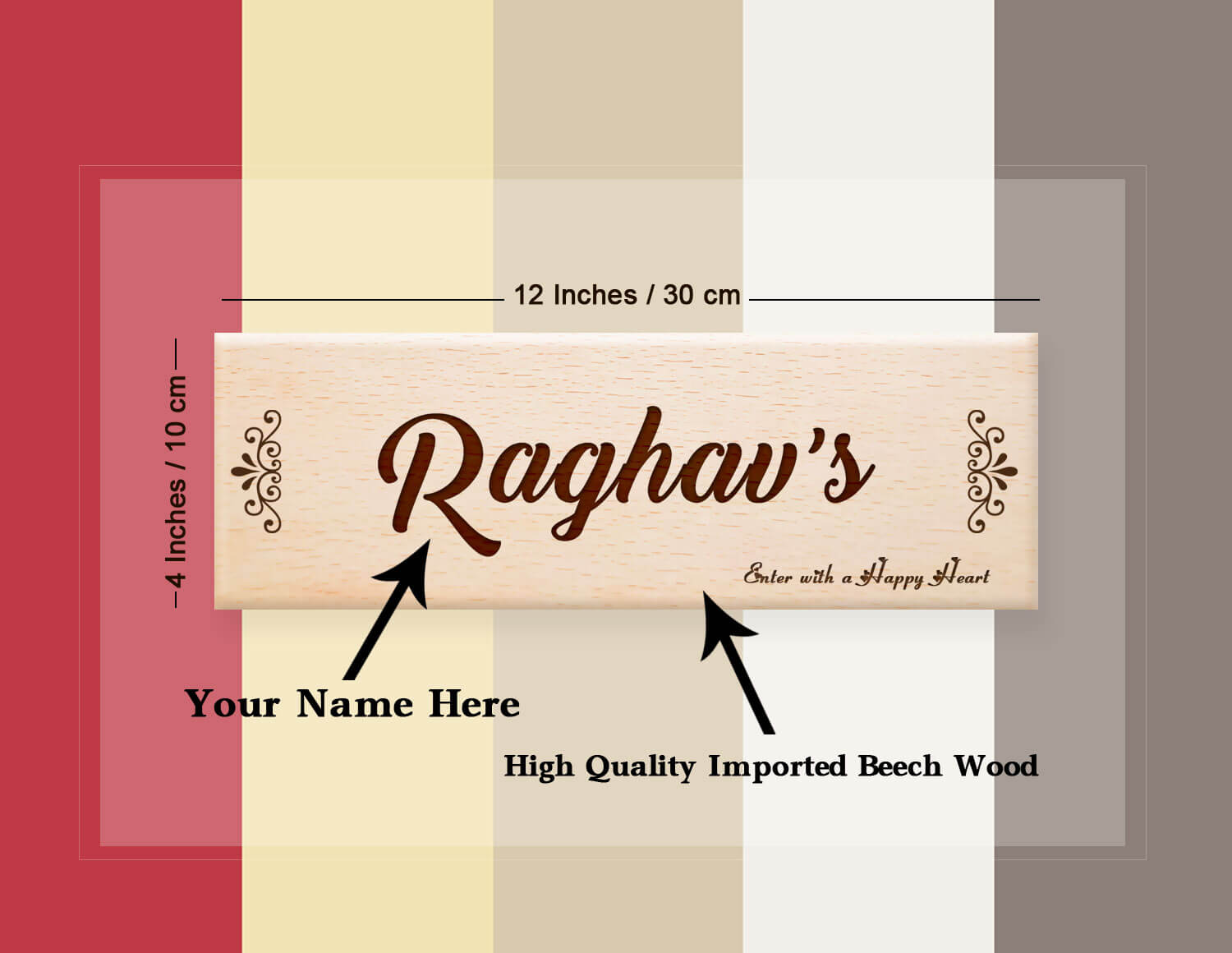 - Fully Customized Name Plate for Home – You can get engraved your Name or Family name, alongwith house or flat number on it. You can also send is your own creative design and that will be engraved on the wooden name plate for home.