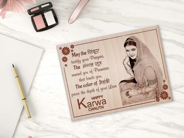 Personalized Engraved Wood Photo Frame Gift for Karwachauth