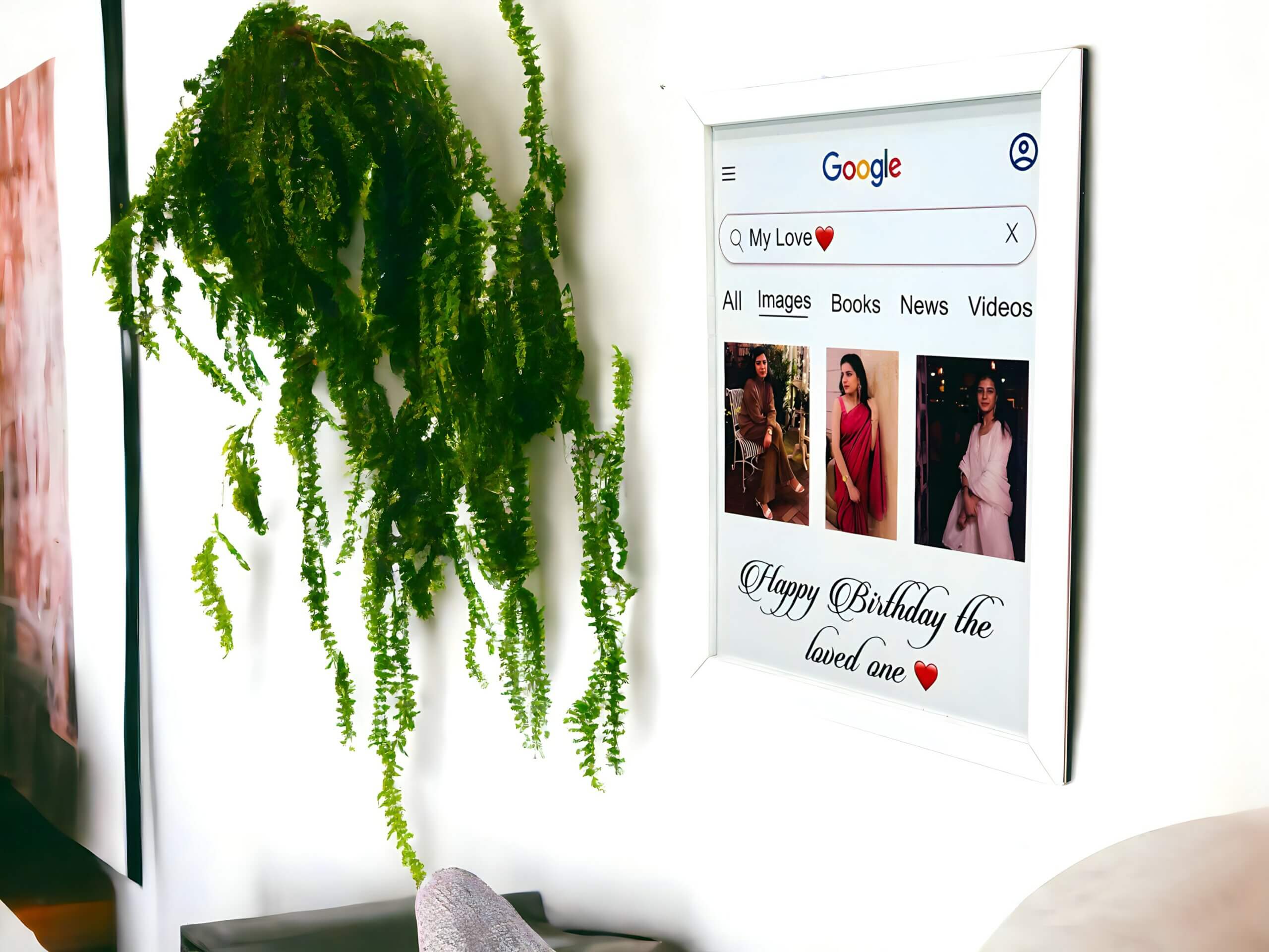 Crafted with precision and designed to blend seamlessly with modern aesthetics, this frame adds a unique touch to your cherished memories. The Personalized Google theme enhances the digital age sentiment, turning each photo into a reminiscent journey through your special moments as a couple.