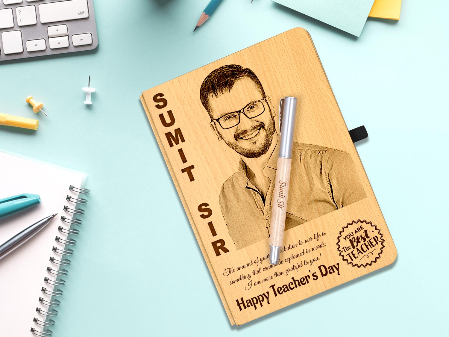 Personalized Incredible Gift For Teacher Wooden Photo Diary & Pen