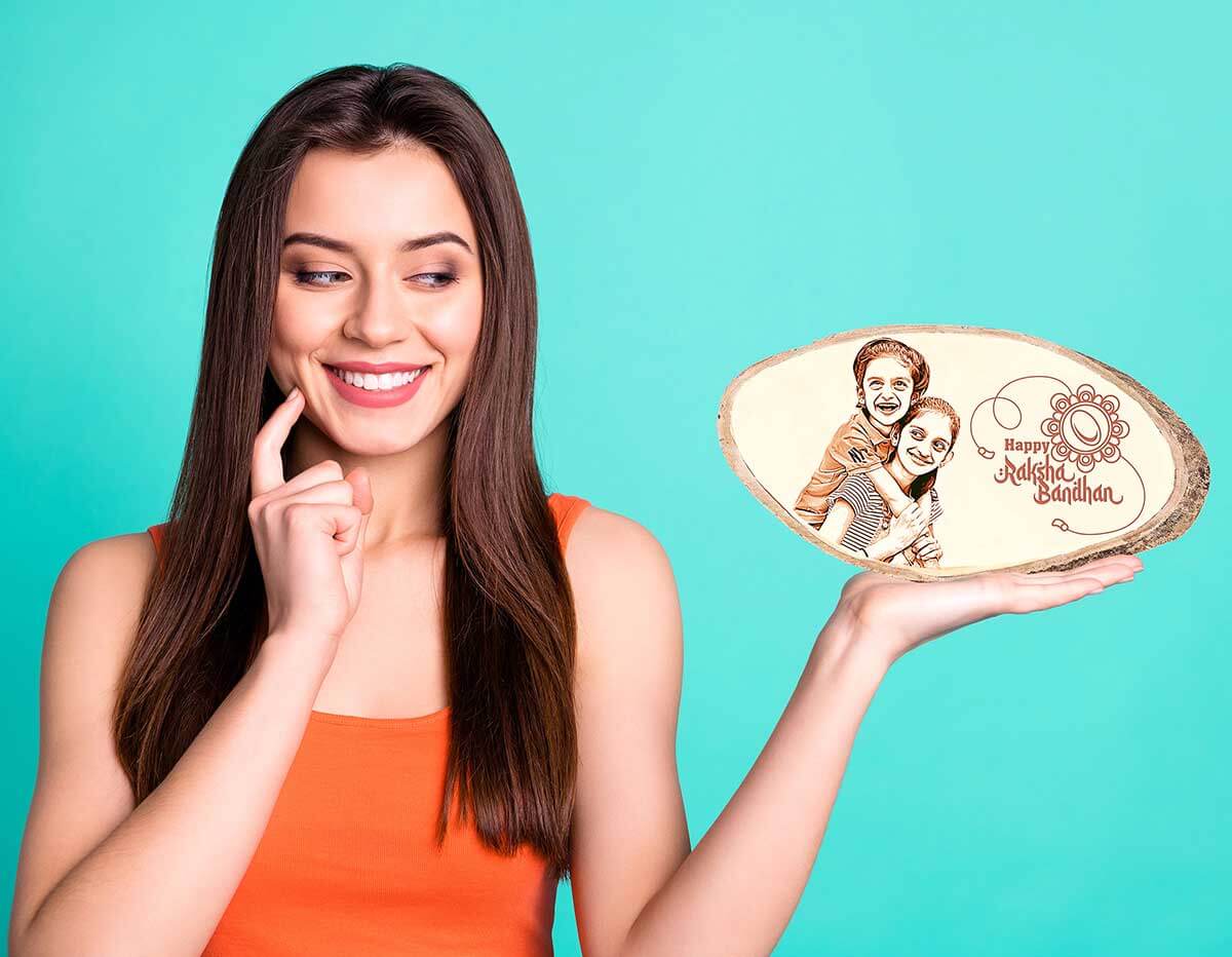This natural wooden photo frame can be the best gift for Brother & Sister or Cousins. This custom Raksha Bandhan photo plaque can make your sister’s day memorable when you surprise them by gifting this.