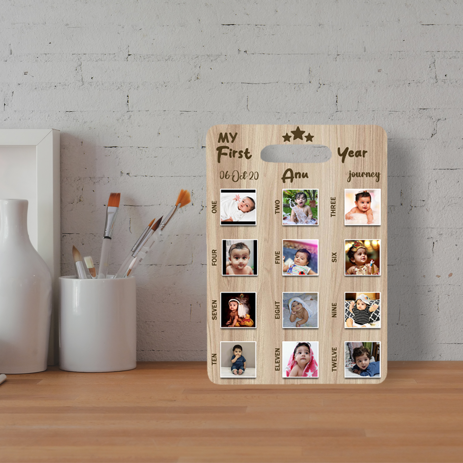 Capture the essence of parenthood with our Personalized 12 Baby Photo Wooden Board & you have to upload high quality image Photos in JPEG, JPG or PNG Format, a heartfelt tribute to the journey of raising a child. Crafted from exquisite wood, this custom board is more than just a kitchen accessory; it’s a treasured keepsake.