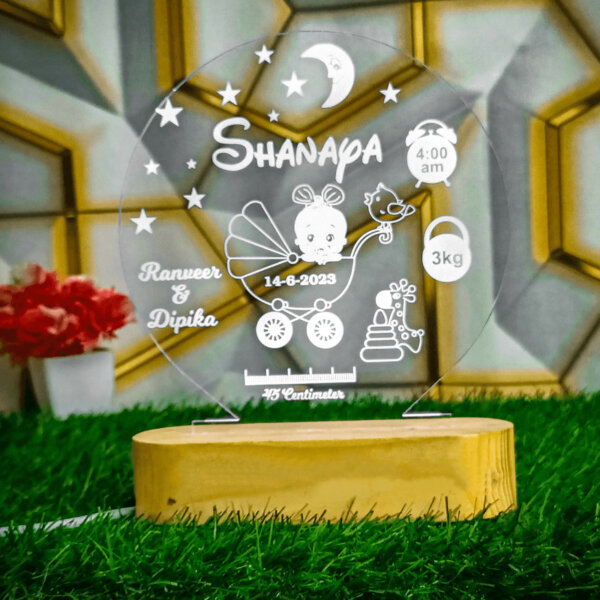 Be the first to review “Personalized Premium Round LED Lamp For Baby With Wood Stand”