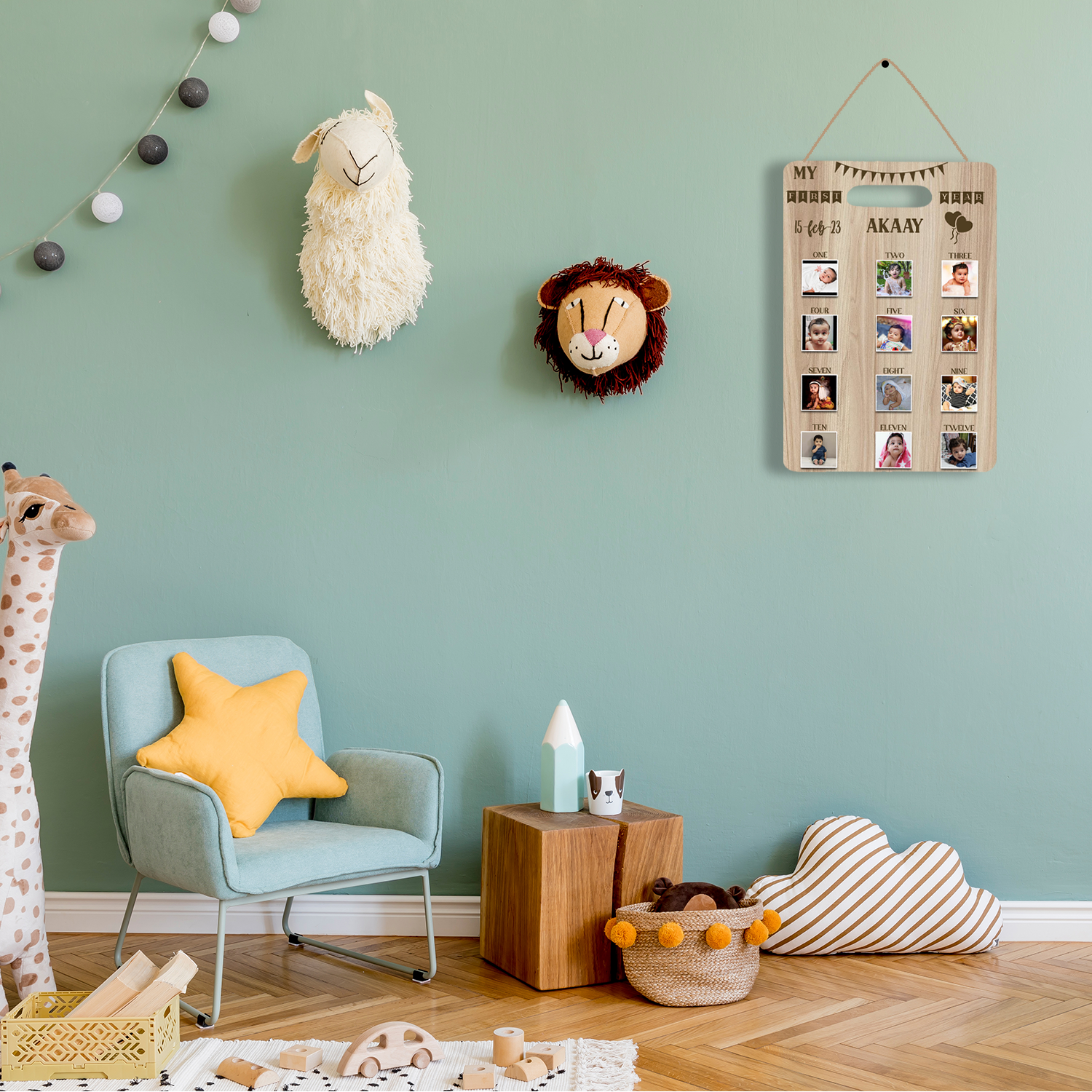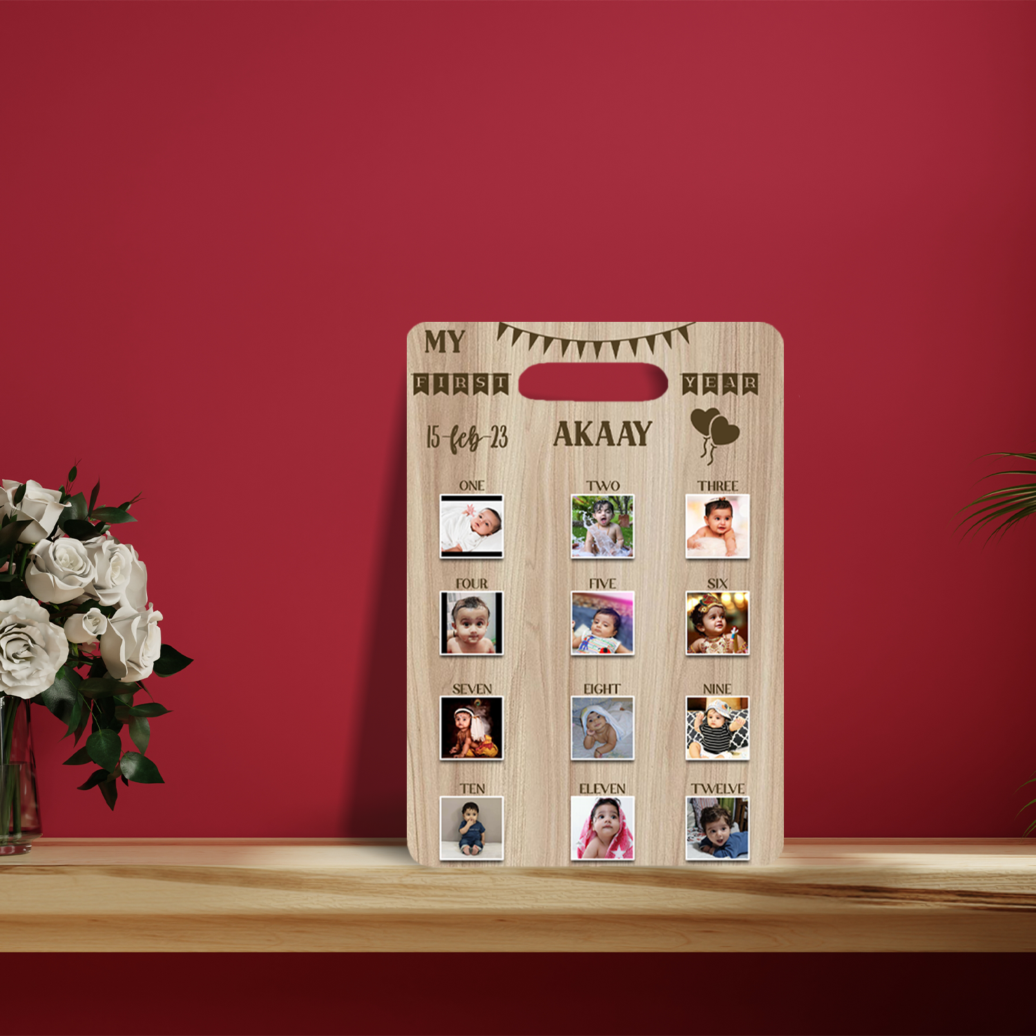 Capture every milestone with our Personalized Wooden 12 Months Photos Board. Perfect for Kids memories for that you have to upload high quality image Photos in JPEG, JPG or PNG Format, this custom Photo board preserves memories in style. In this we have 3 Different sizes Small, Medium & Large.