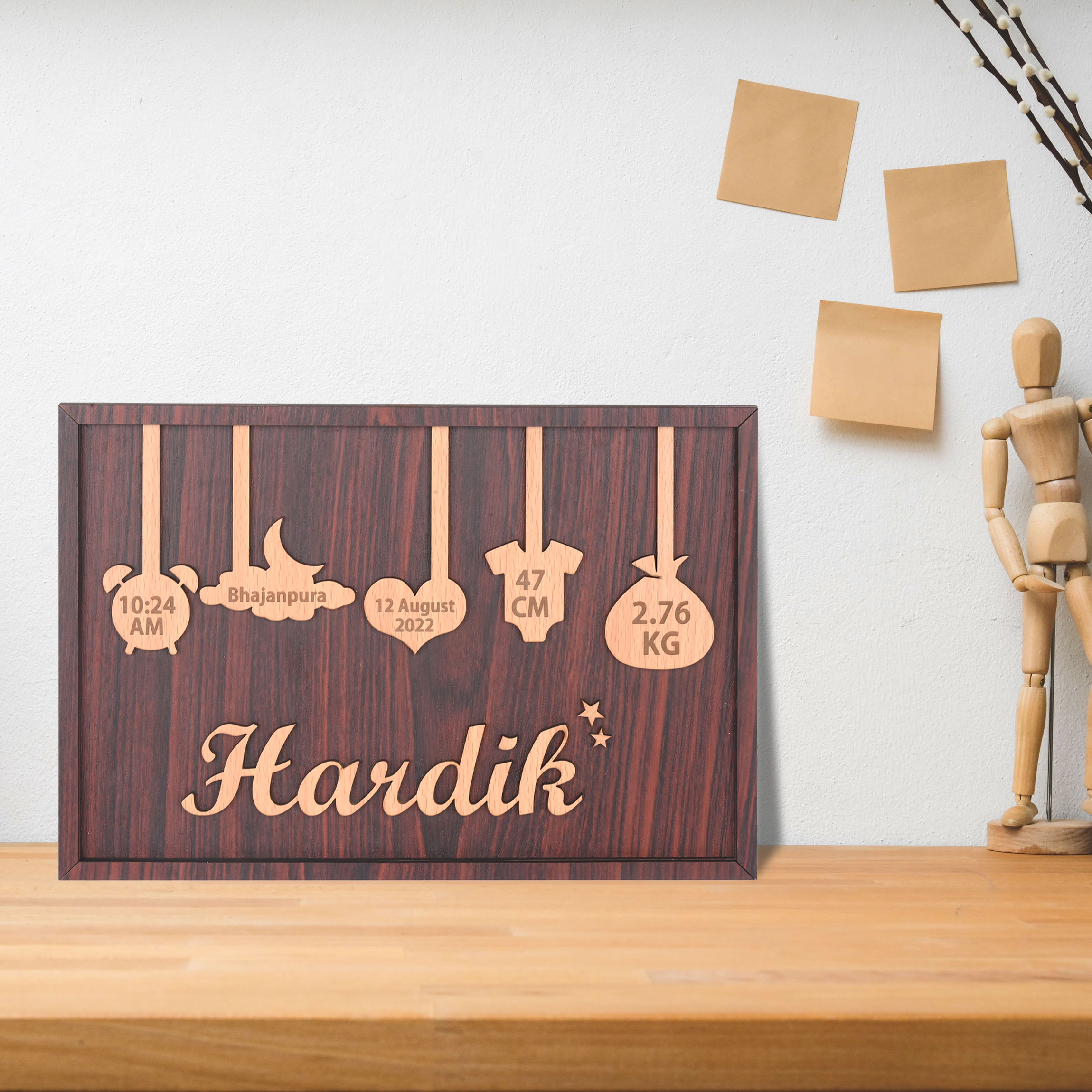 Personalized Wooden Name Frame For New Born Baby With Born Details