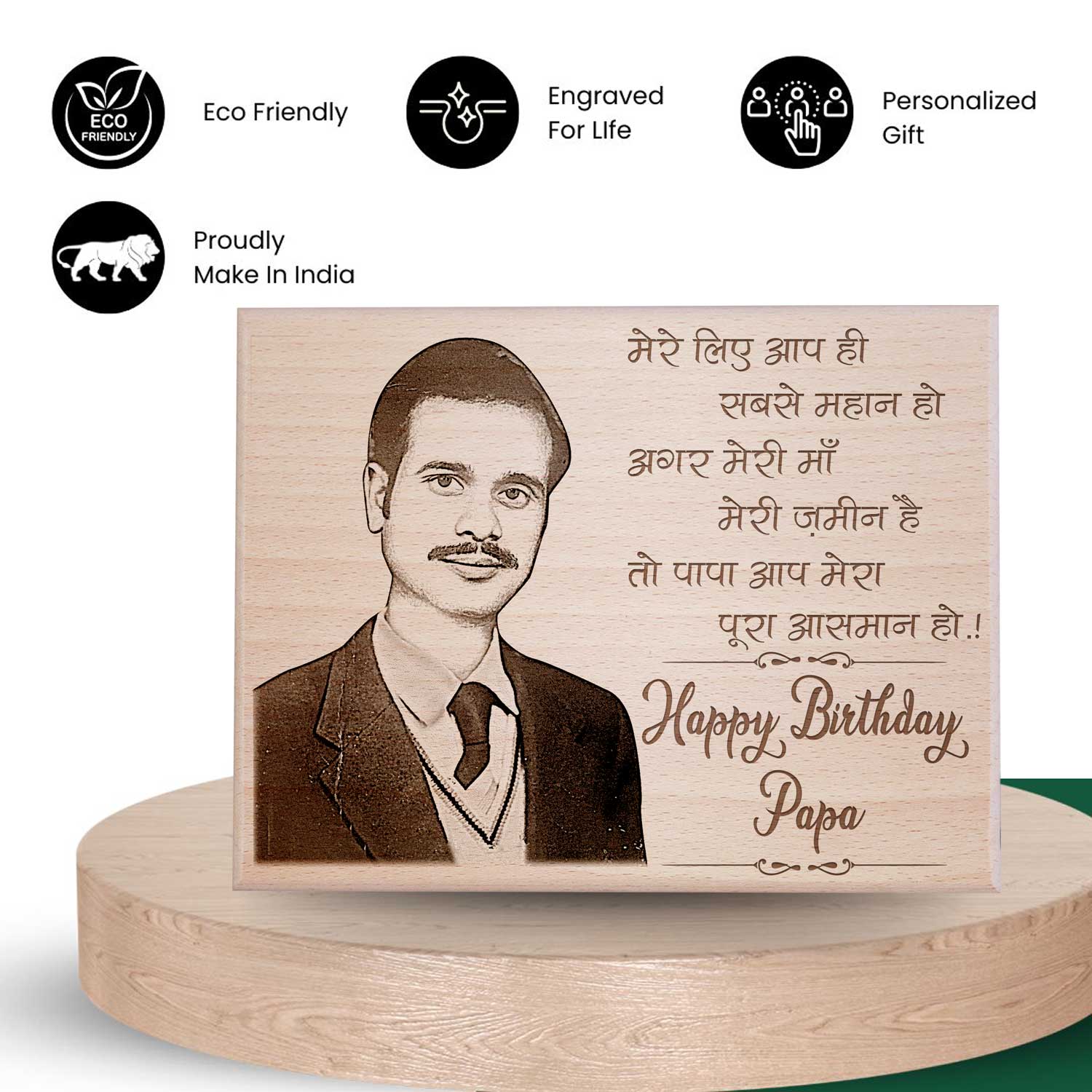 Celebrate Dad’s Day with our exquisite Personalized Engraved Wooden Photo Frame For Dad. Crafted from premium beech wood, measuring 9×7 inches.