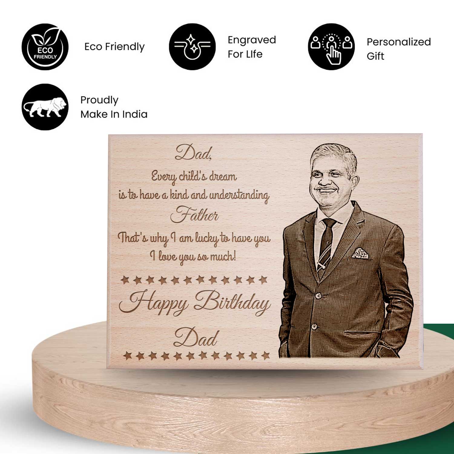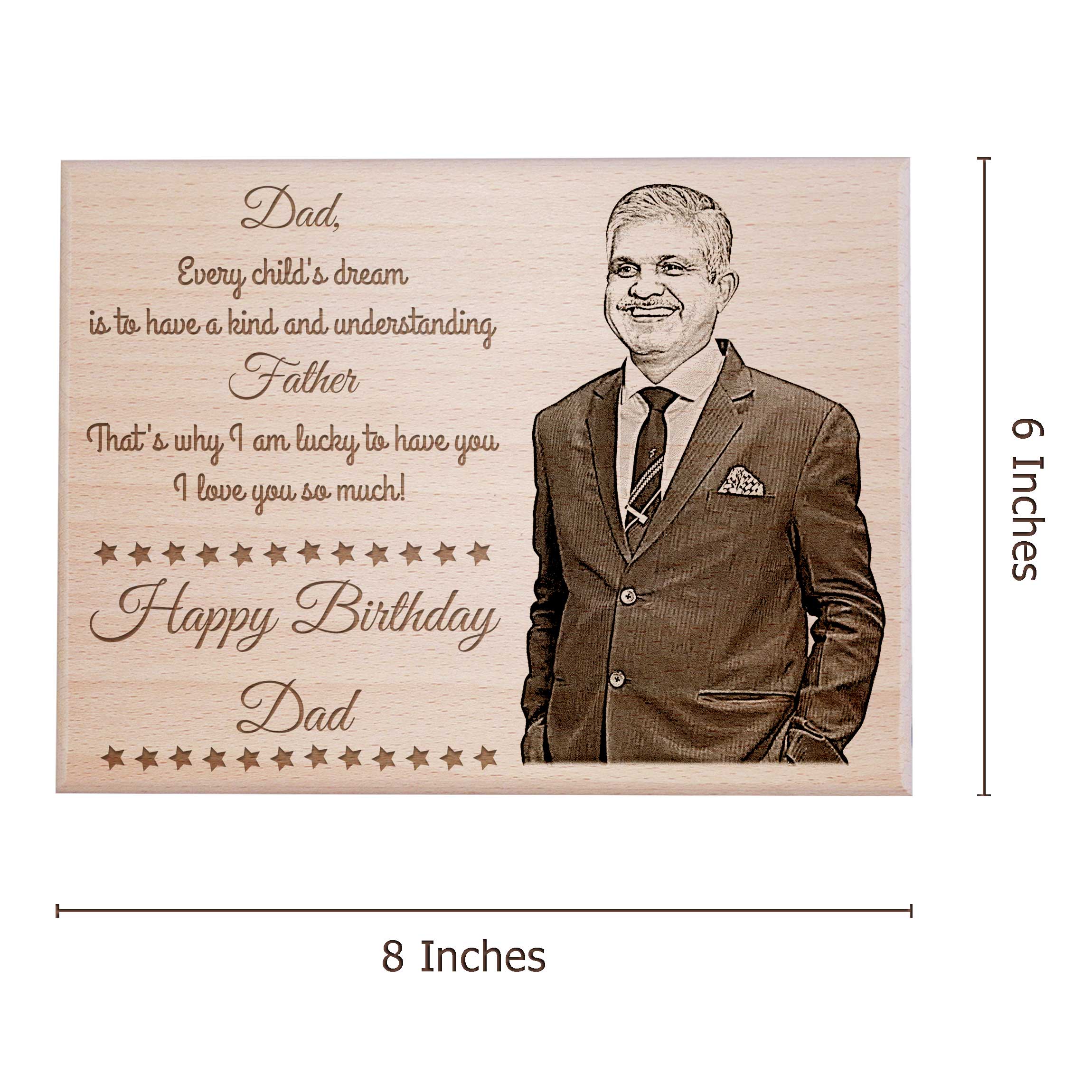 What sets our engraved gifts apart is the customization feature. Engraved with intricate details, this father’s day photo frame becomes a truly one-of-a-kind gift. Our engraved photo frame for father isn’t just a gift; it’s a symbol of the bond between father and child. Every time Dad gazes upon the frame, he’ll be reminded of the love and appreciation that surrounds him. Our personalized gift for dad birthday are tangible expression of gratitude that speaks volumes without saying a word. In a world filled with fleeting trends, our wooden engraved gifts stands the test of time.