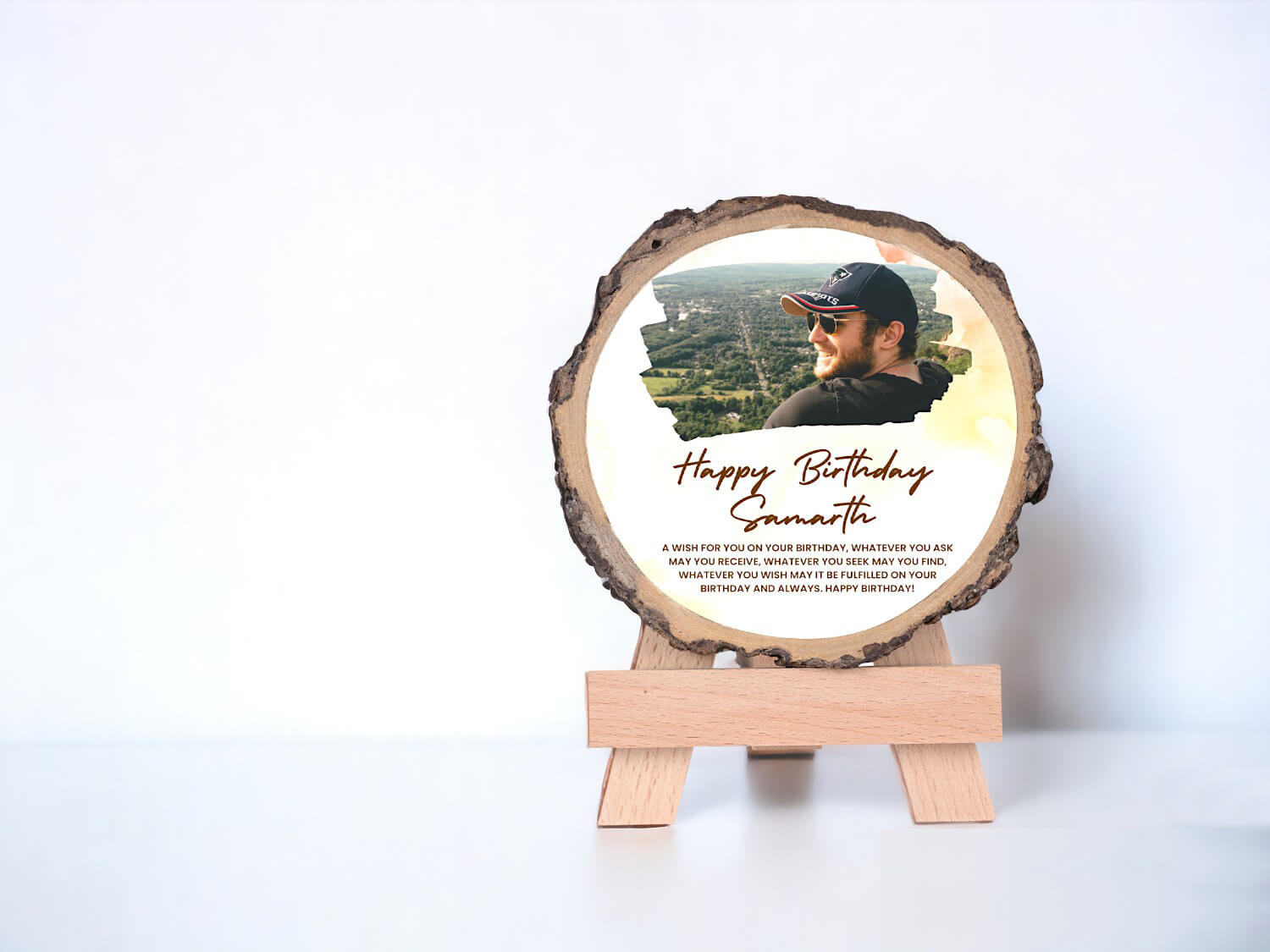 Crafted with precision and care, the cute and meaningful design of this picture frame is tailored for boyfriends, adding a touch of warmth and affection to any room. The personalization options are where the magic happens – upload a cherished photo that encapsulates a beautiful memory and add a personal message that will tug at his heartstrings. This photo frame is more than just a display. It is made of natural wood slice.