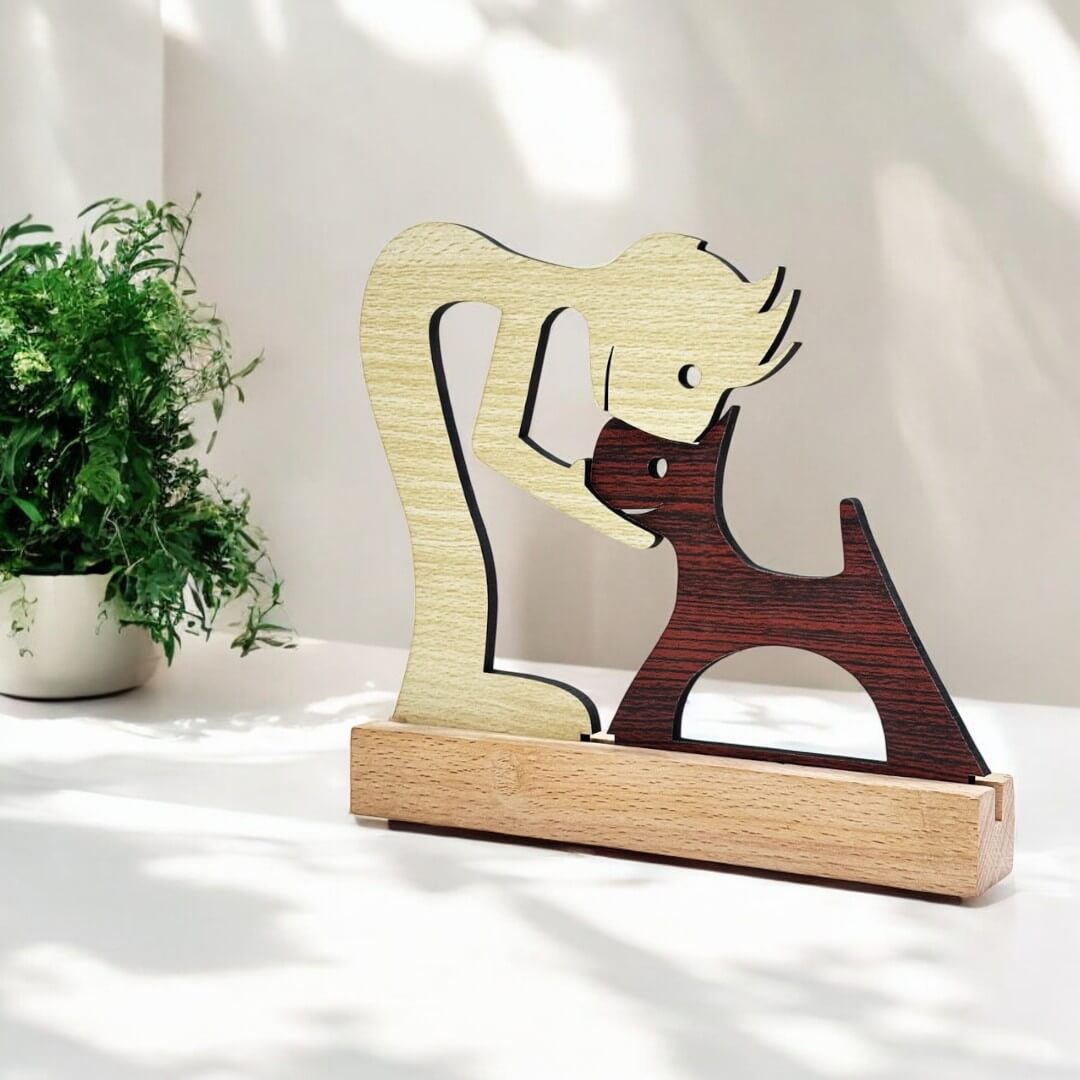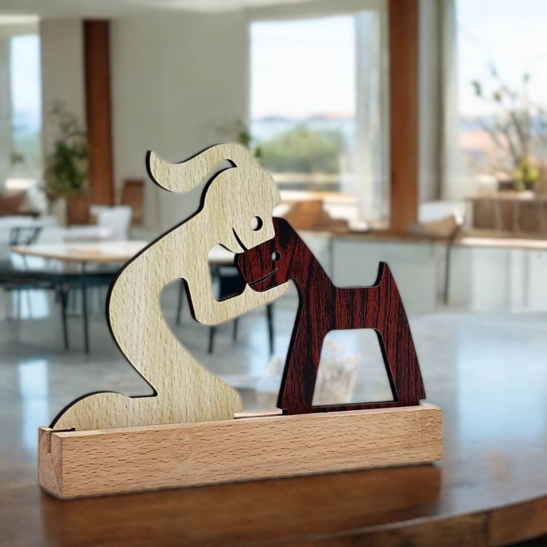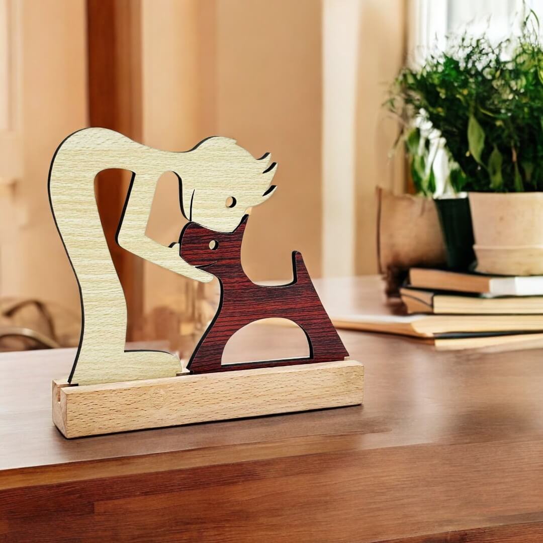 Enhance your living space with this Premium Home Décor Wooden Statue for Pet Lovers, a masterpiece that beautifully captures the unbreakable bond between humans and their beloved pets. Designed with precision and care, this wooden statue is more than just a decorative item—it’s a heartfelt tribute to the joy, companionship, and unconditional love pets bring into our lives.