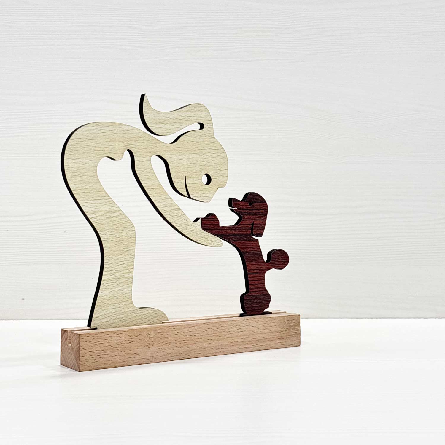 Celebrate the unique connection between humans and pets with this stunning piece of art. Whether you’re treating yourself or surprising a loved one, this wooden statue is a meaningful and lasting way to honor the love we share with our pets.