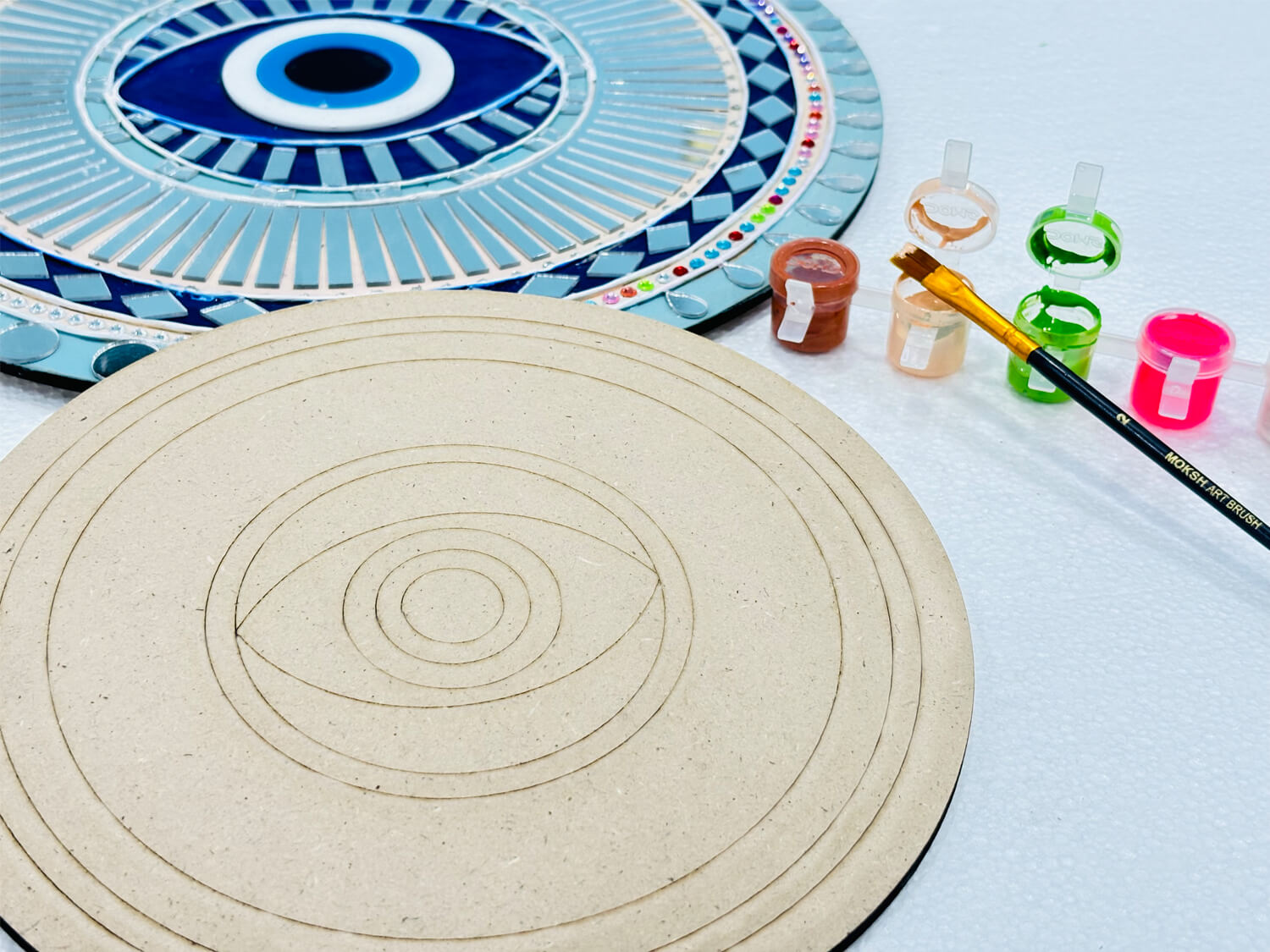Round Evil Eye Wooden Lippan Art Board DIY Kit