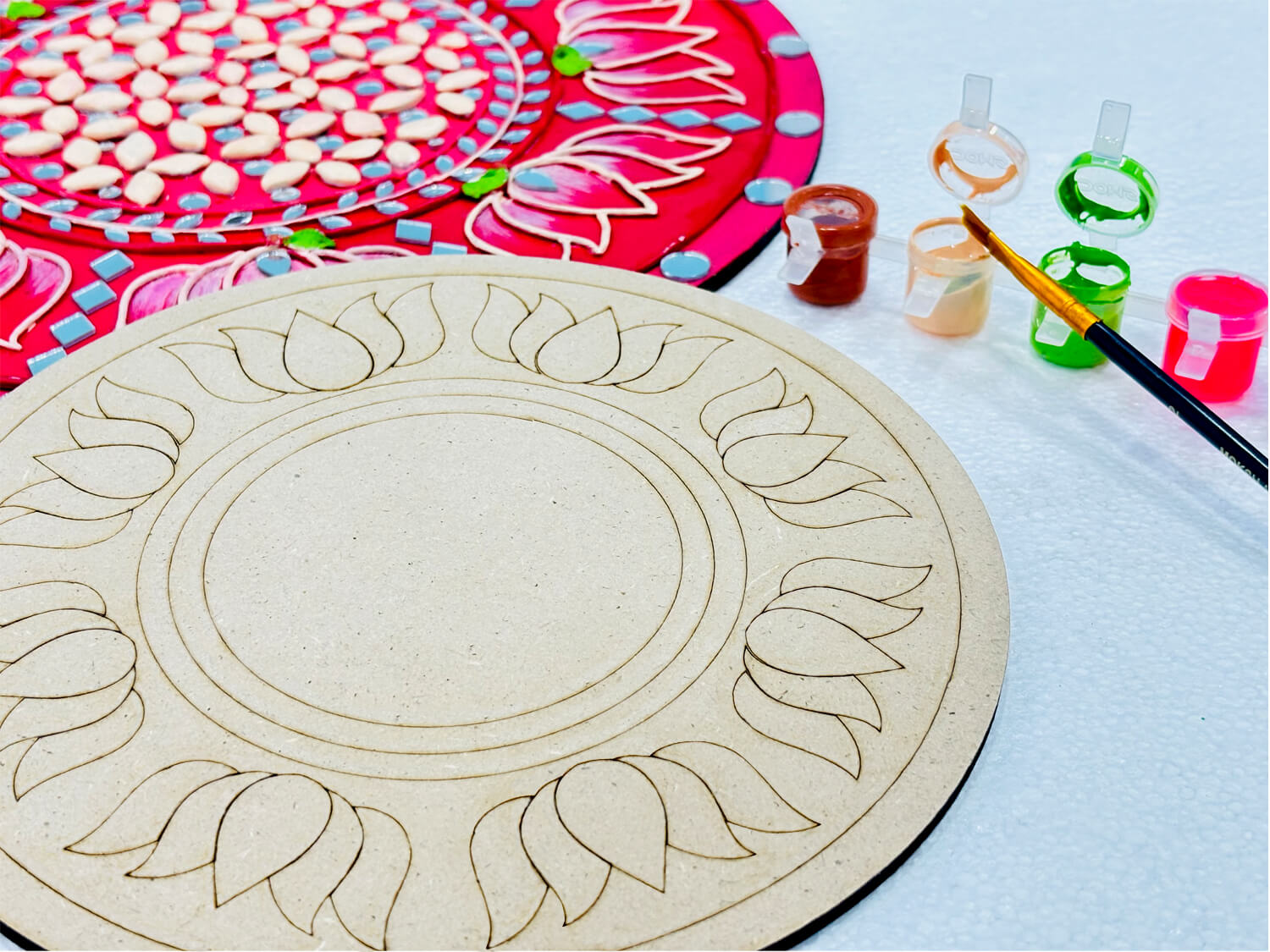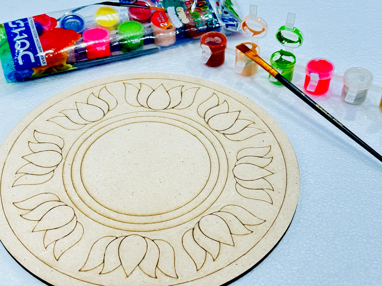 Crafted with precision, our MDF board is versatile and ready for your imaginative touch. Use it to create stunning mandalas that can adorn your walls as captivating pieces of art. The round MDF art board is also an excellent choice for experimenting with lippan art, offering a unique twist to traditional crafting.