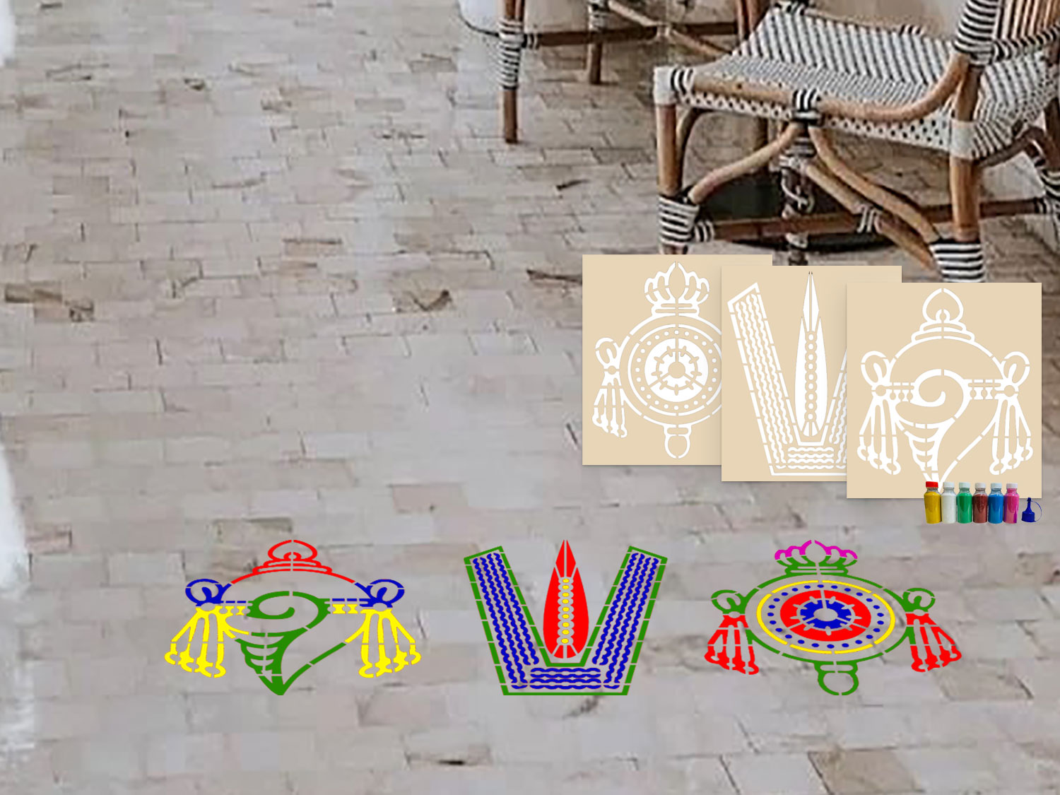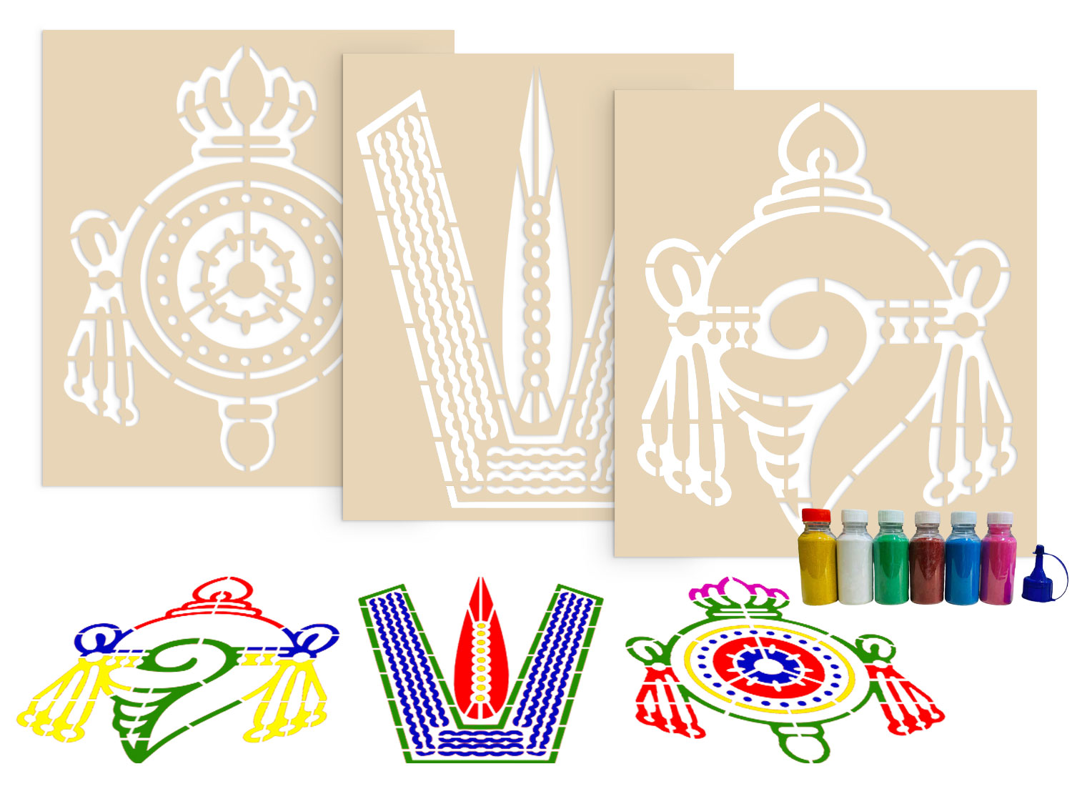 Divine Harmony Shanku Chakra Rangoli Stencils Set with 6 Colors
