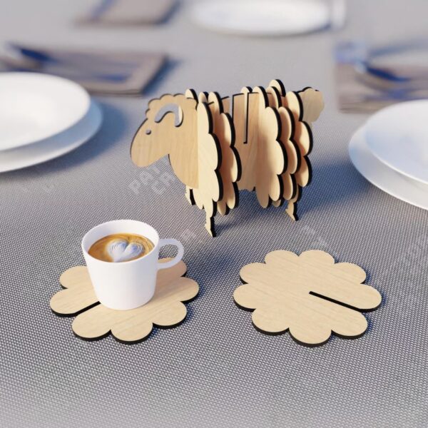 Stylish Sheep Design Coaster – Wooden Coaster Set of 5