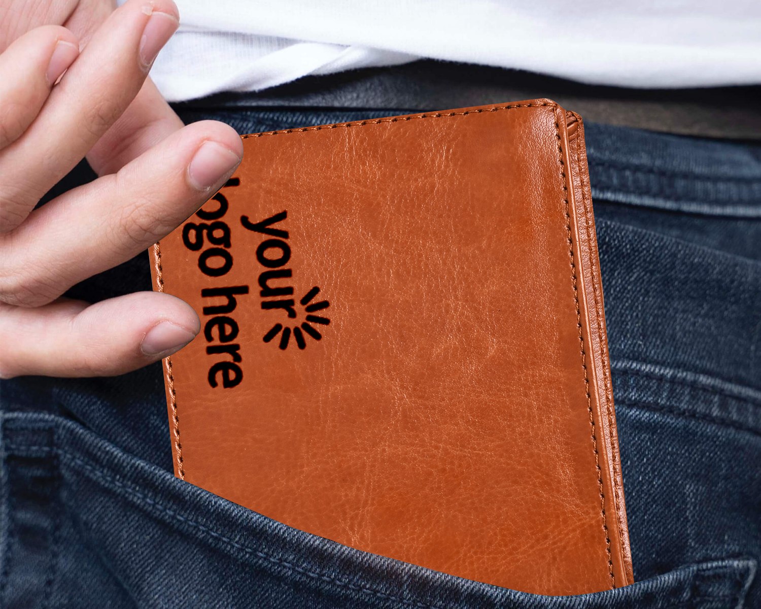 Whether you’re looking for a unique birthday gift, a retirement token, or a welcoming gesture for a new colleague, this personalized man wallets delivers. It’s versatile, appeals to wallet man of all ages and styles, and represents a thoughtful gesture of appreciation and camaraderie among colleagues. Shop now and make a lasting impression with this premium vegan leather wallet for men’s gift. Don’t settle for ordinary; choose extraordinary with our Personalized Wallet for Men with Company Logo.
