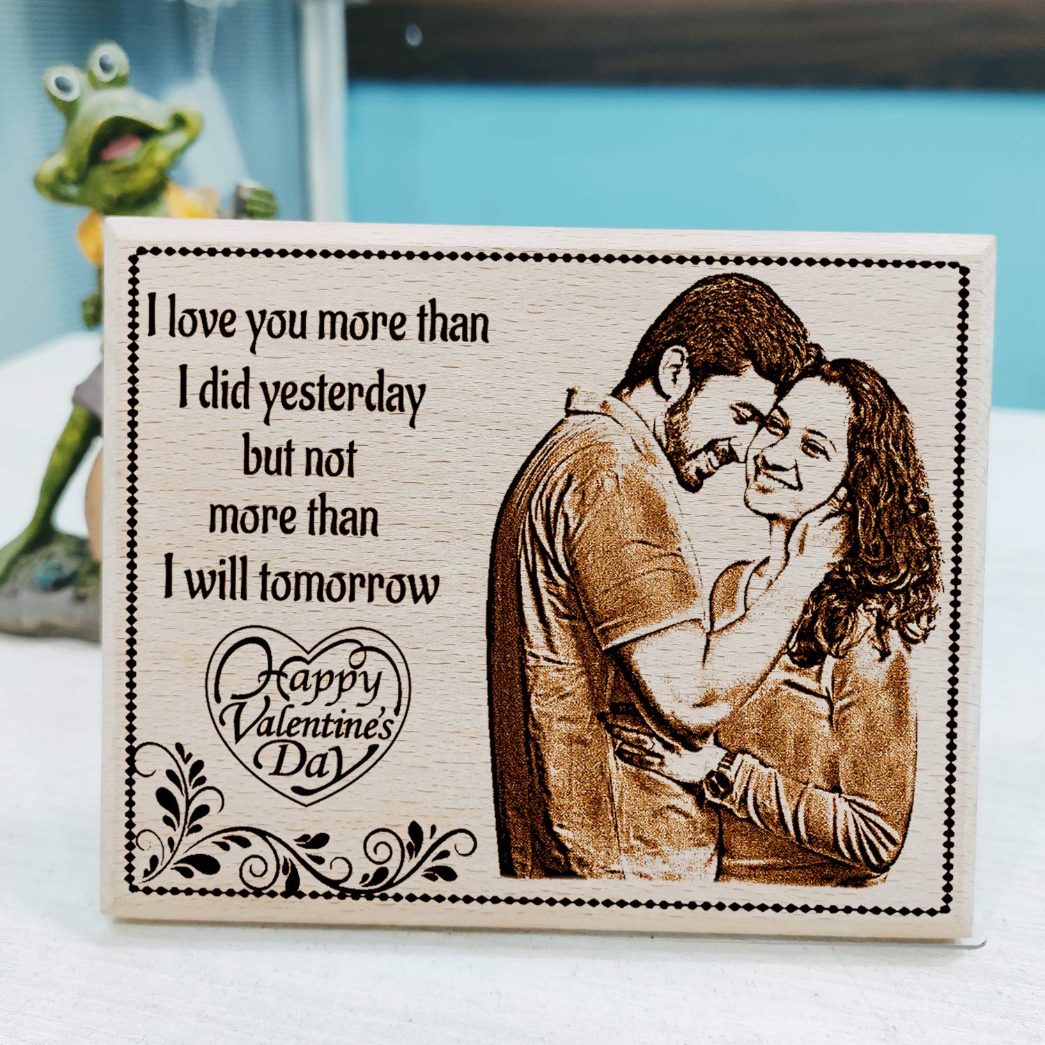 Valentines Personalized Engraved Wooden Photo Frame Gift for Girlfriend or Boyfriend (7×4 inches)