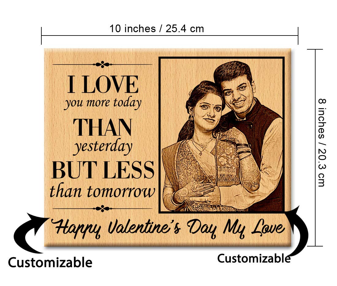 Personalized Wooden Engraved Photo Plaque Valentine Gift for Couples (8×6 inches)