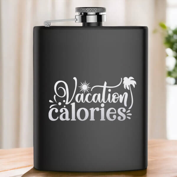 Transport yourself to a bygone era with our Vintage Elegance Hip Flask: Vacation Calories edition. Crafted with precision engraving, it exudes timeless charm and sophistication, the size is 14.5 x 7 cm. making it a perfect gift for any occasion. Shop now and add a touch of nostalgia to your gifting!
