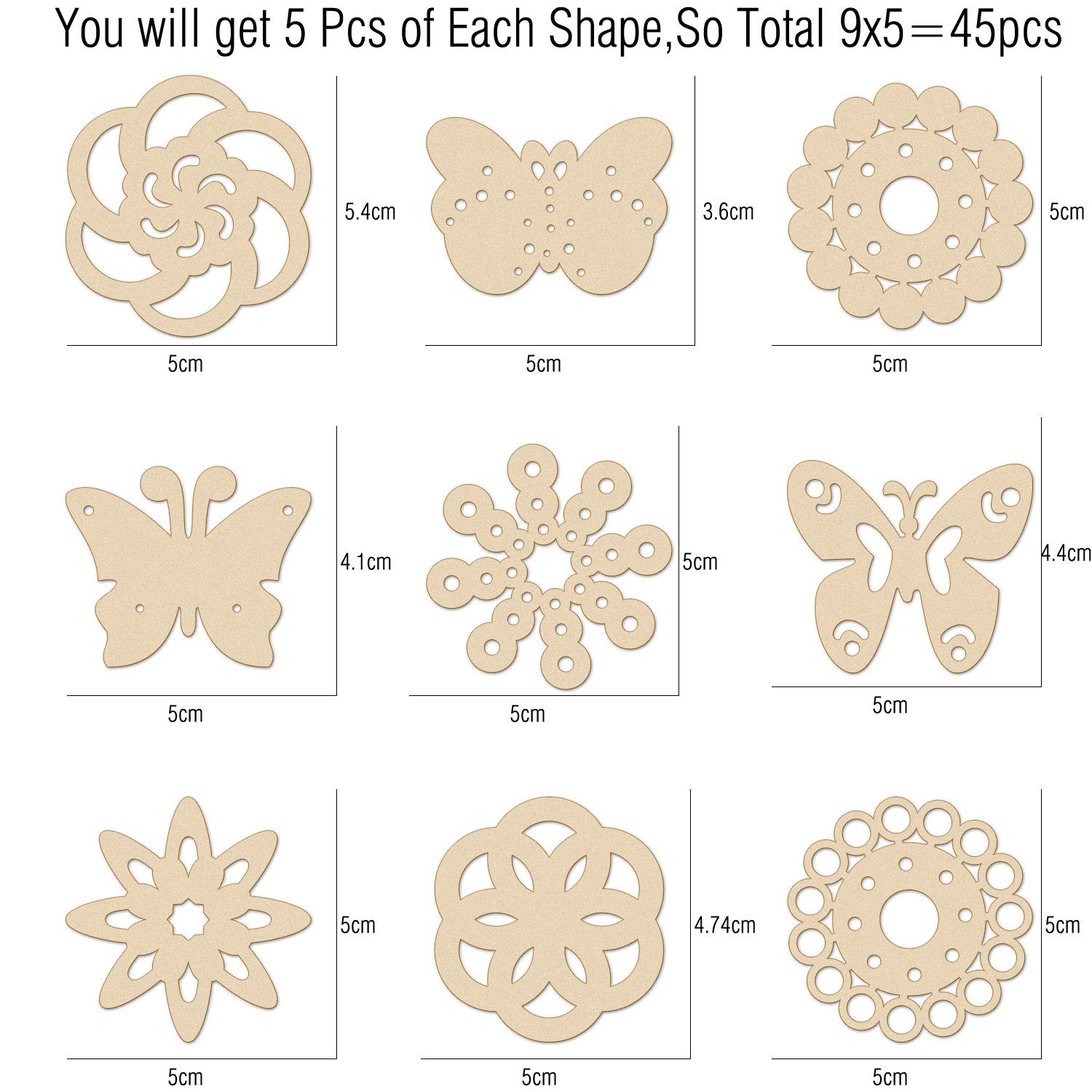 Wooden DIY Snowflakes or Ornaments For Christmas Decorations (Set of 45)