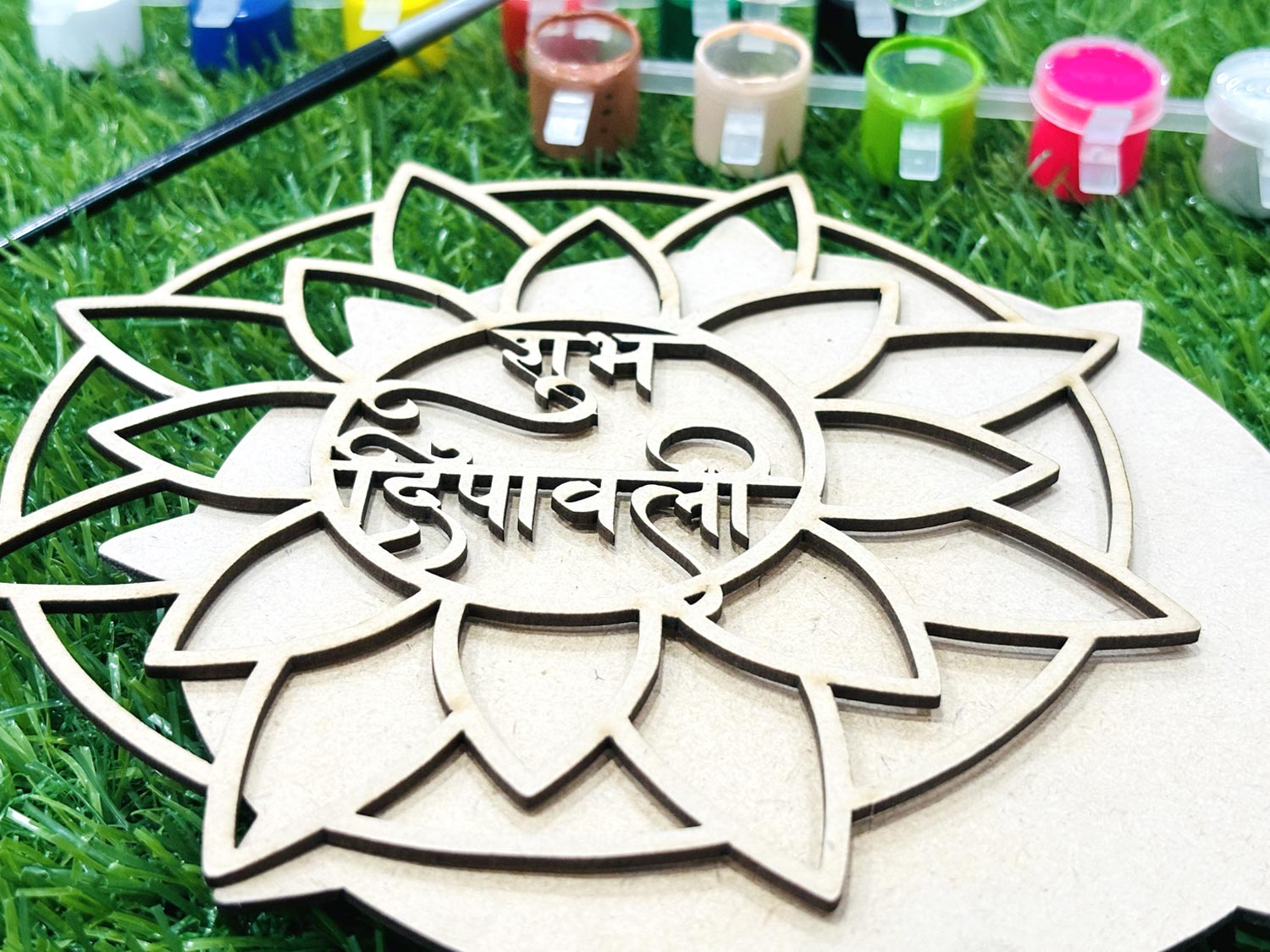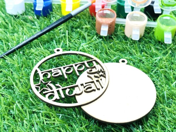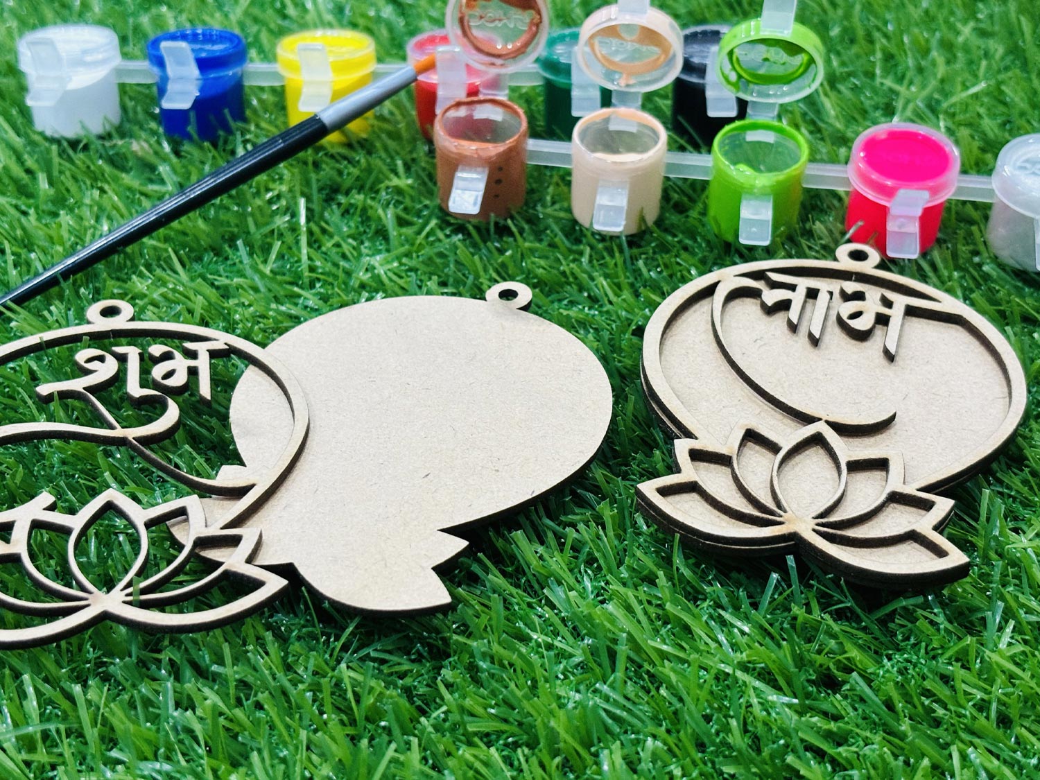 Elevate your Diwali decor with our exquisite Wooden DIY Hanging Diwali Decoration Ornaments. We will send you colors with the ornaments & These home decoration items add a touch of tradition and elegance to your space, making it the perfect home hanging ornament for the festive season. Color them or decorate them using threads, paint or beads. You can use them for decoration purpose at your home or use them as craft supplies for any kind of artwork or these can be used in wedding cards or gift boxes for deepawali. Enhance your space with these wooden wall hangings and wall hanging ornaments, celebrating a Happy Diwali with a touch of elegance and style.