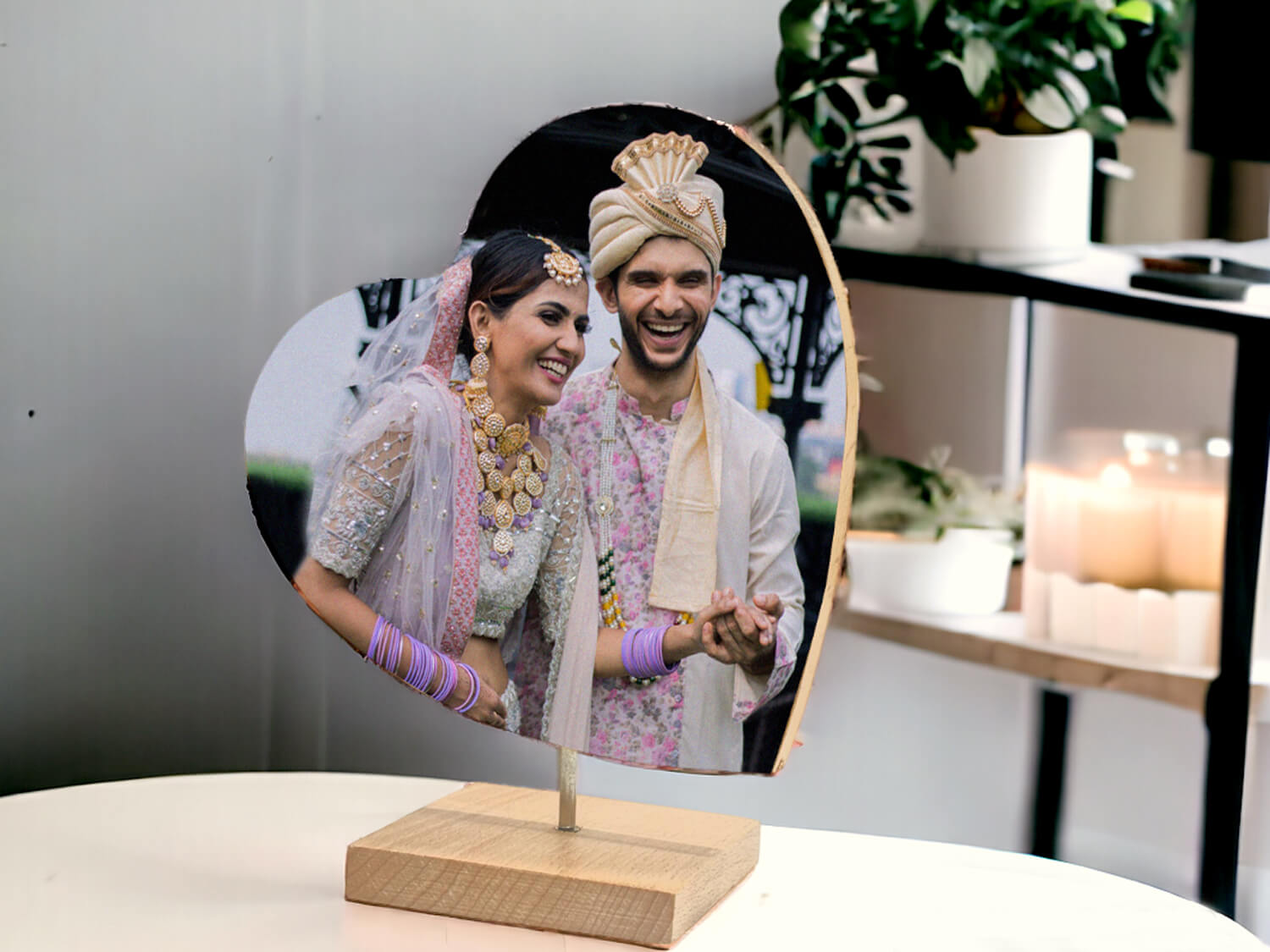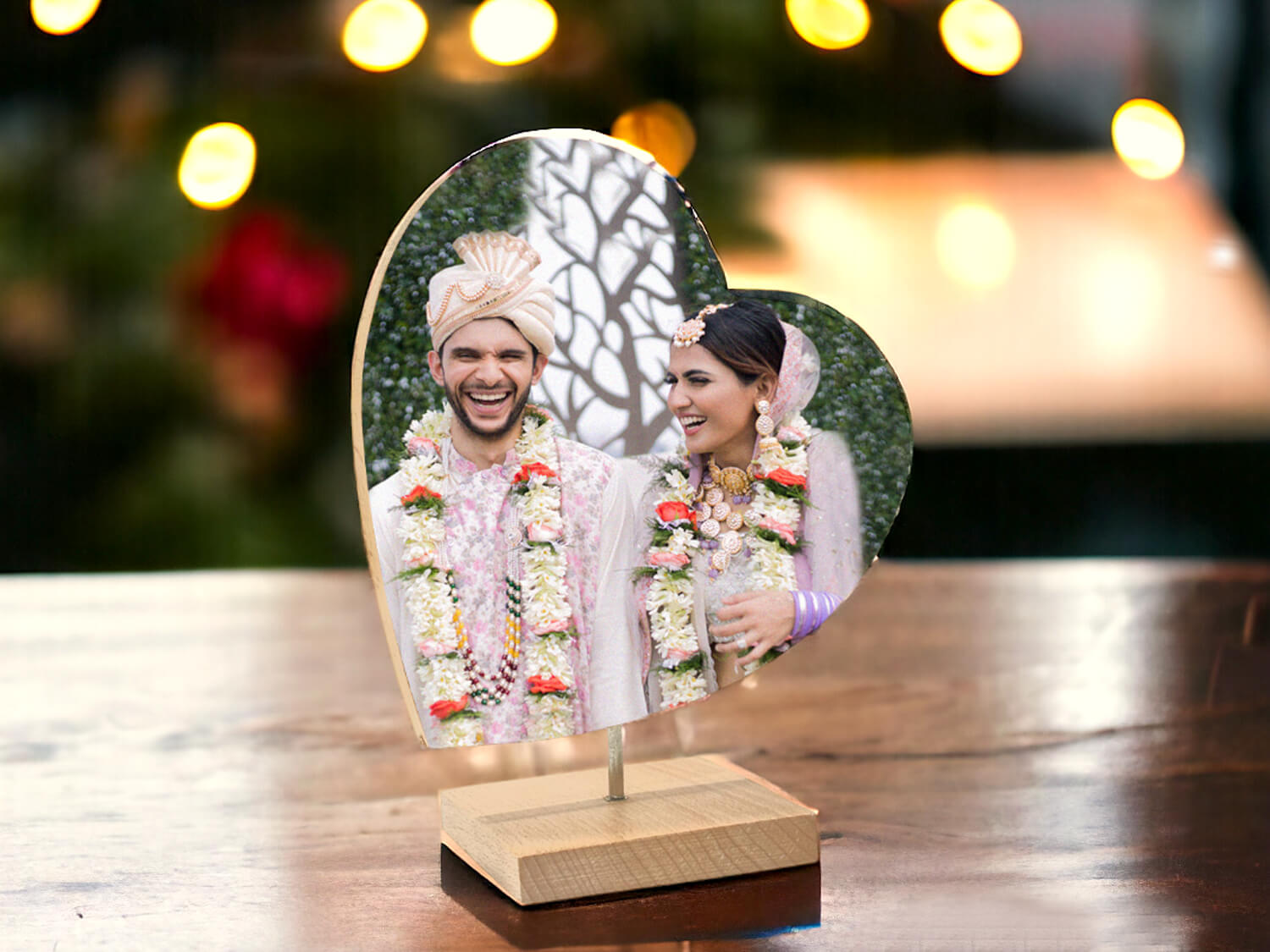 Crafted from high-quality wood, this photo frame exudes warmth and elegance. Its unique double-sided design allows you to showcase two special moments, making it a symbol of your enduring love and connection. The heart-shaped frame adds a touch of romance, making it an ideal choice for couples looking to immortalize their cherished memories.