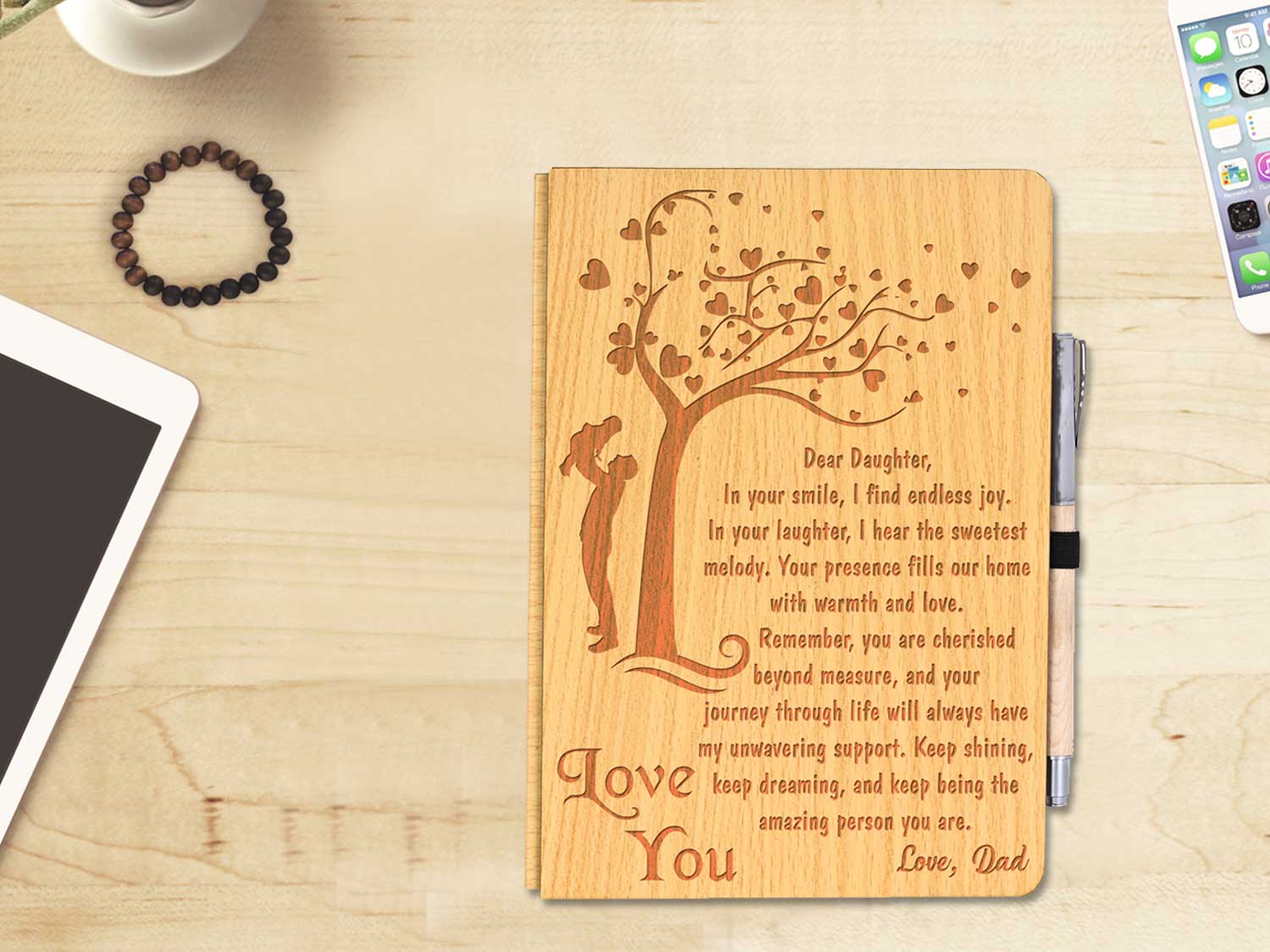 From daughter birthday gifts from dad that convey your love to exquisite presents for Daughters’ Day, we have it all. Explore a curated collection of Personalized gifts for daughter that includes a variety of options like a personalized wooden diary with pen – a unique birthday gift for daughter. Our special daughter gifts encompass beautifully engraved wooden diaries that serve as a constant reminder of your affection.