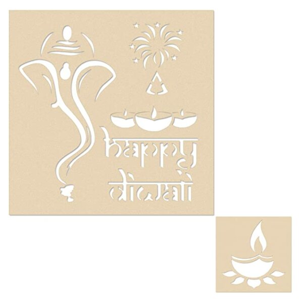 Wooden Rangoli Stencils – Ganpati and Happy Diwali Set
