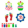 The set includes four unique stencil designs (Laxmi Charan, Kalash, Ganesha & Om) that can be used with the included rangoli colors to make vibrant, intricate patterns. These wooden stencils for rangoli are lightweight, eco-friendly, and reusable, making them an excellent choice for environmentally-conscious buyers. Whether you’re new to creating rangoli or a seasoned artist, this set provides a perfect blend of tradition and modernity.